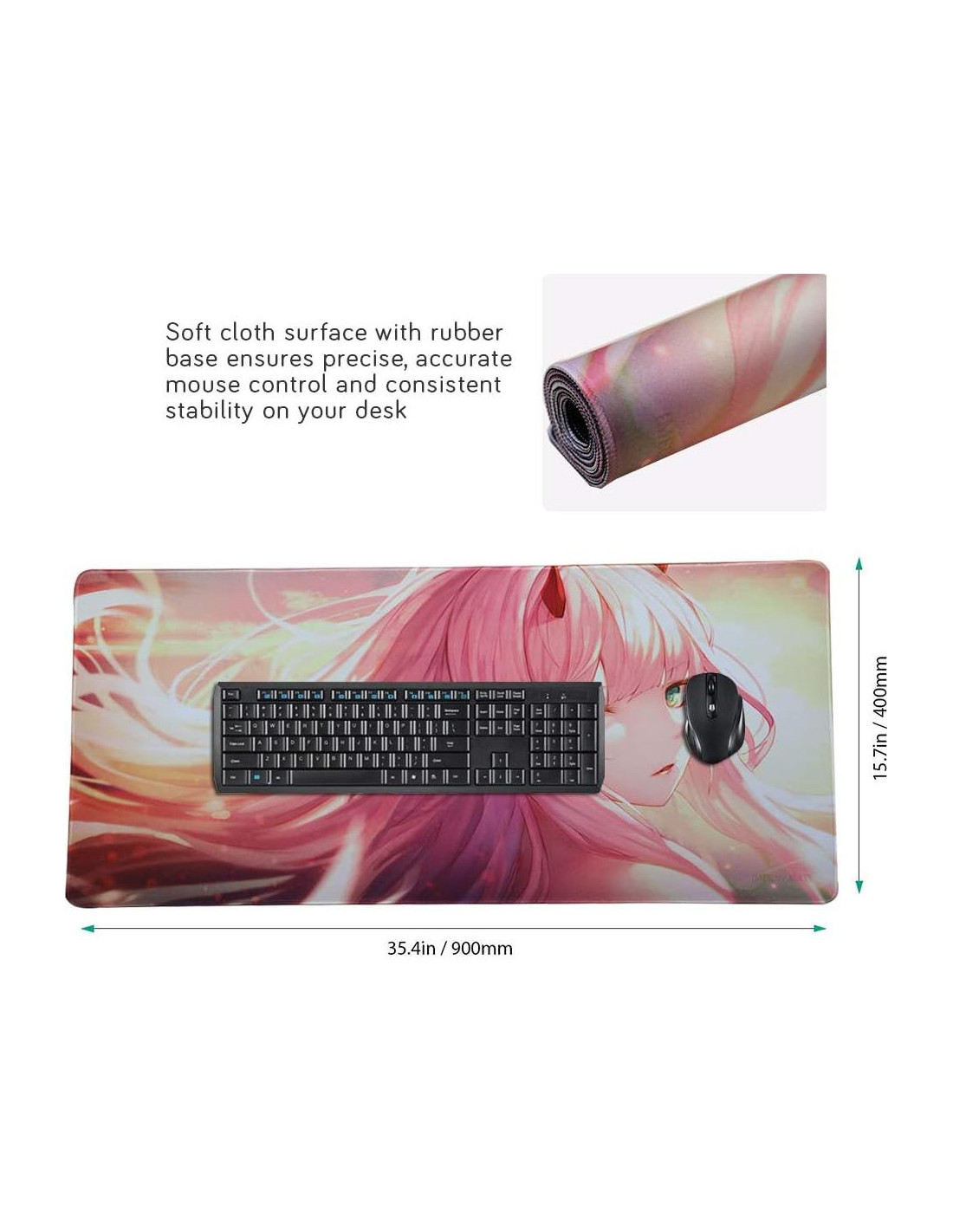 - Tamaño Extendido: La alfombrilla de ratón para juegos mide aproximadamente 90 x 40 cm (35.4 x 15.7 pulgadas), tamaño ultra grande que se ajustará perfectamente a su escritorio / teclado con espacio extra para el movimiento del ratón. Adecuado para todo tipo de ratones ópticos.