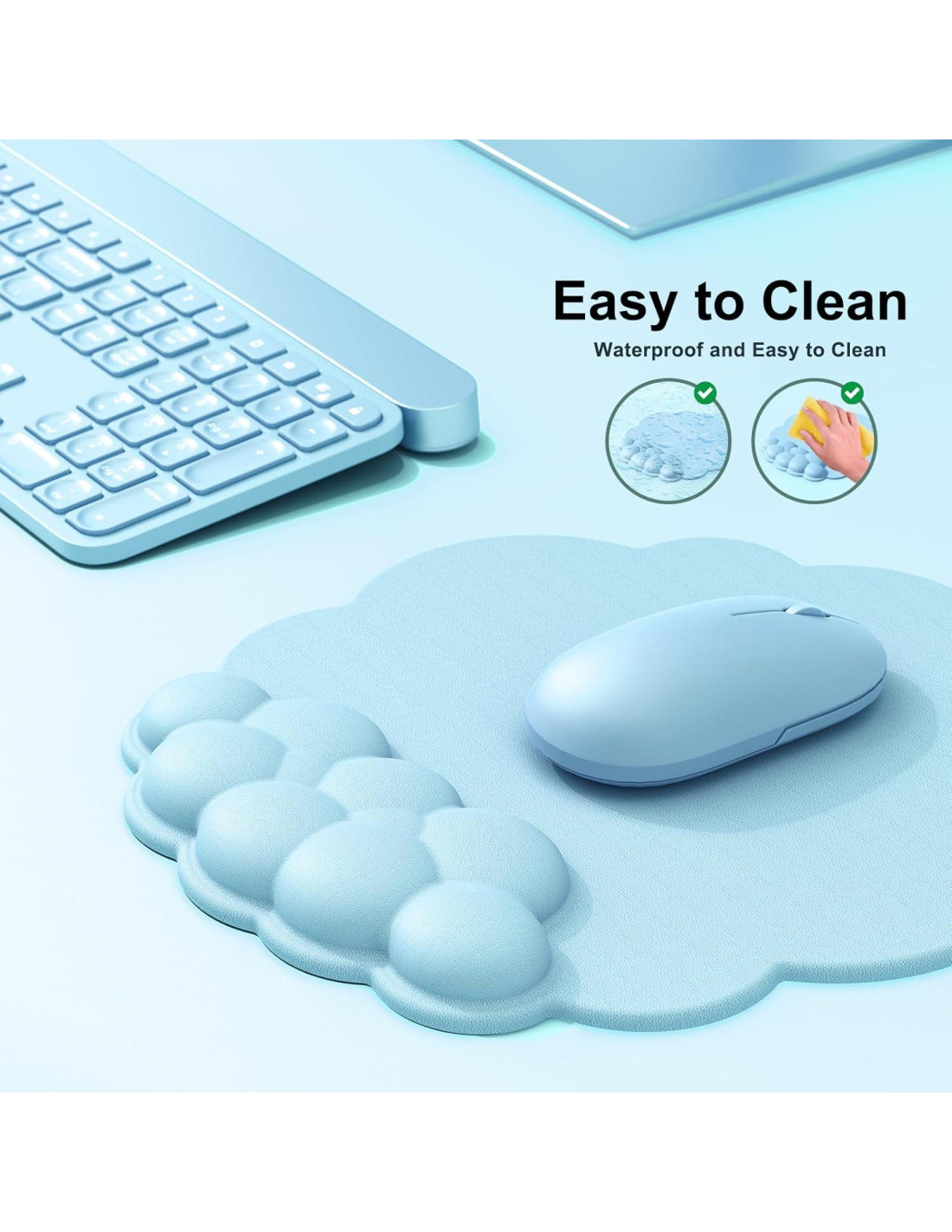 - [Diseño en Forma de Nube] Este soporte para muñeca para teclado y almohadilla para ratón utiliza un diseño en forma de nube con superficies. El diseño en forma de nube del soporte para muñeca para teclado se adapta mejor a tu mano. La almohadilla para muñeca del ratón mantiene tu muñeca cómoda. La superficie texturizada permite que el aire circule entre tu muñeca y el reposamuñecas de computadora, evitando una sensación caliente y sudorosa. Nuestra almohadilla de teclado en forma de nube y la alfombrilla de ratón en forma de nube son un compañero perfecto para trabajar y estudiar.