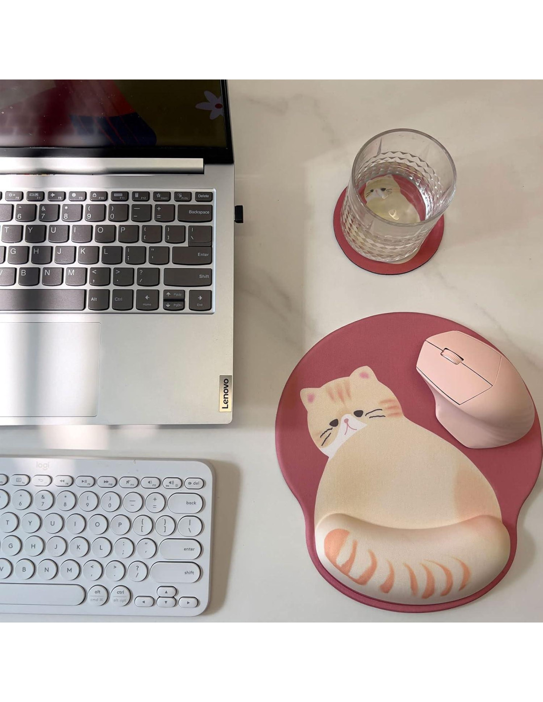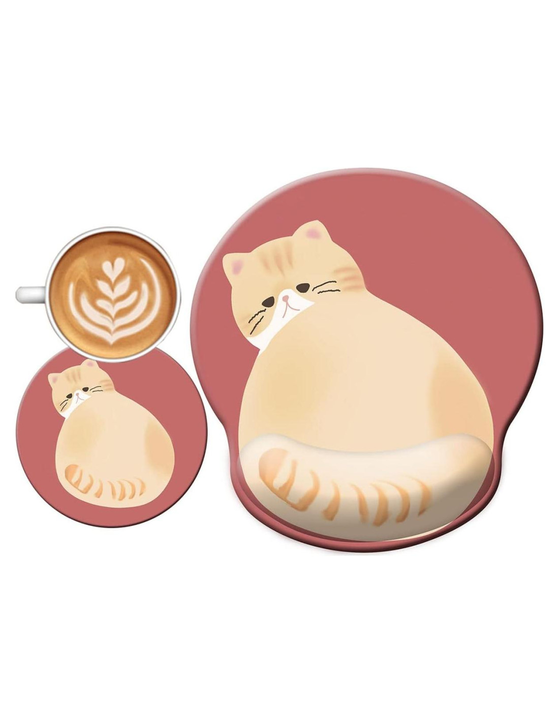 - [Tamaño Perfecto] La alfombrilla de ratón con forma de gato 3D ( 22.86 x 25.15 cm)-que es un 20% más grande que la normal. El mismo patrón del Posavasos (10.16x10.16x0.41 cm) está diseñado para tazas de café. Adecuado para ratones inalámbricos/ratones con cable, compatible con Computadora/iMac/Laptop/Notebook.