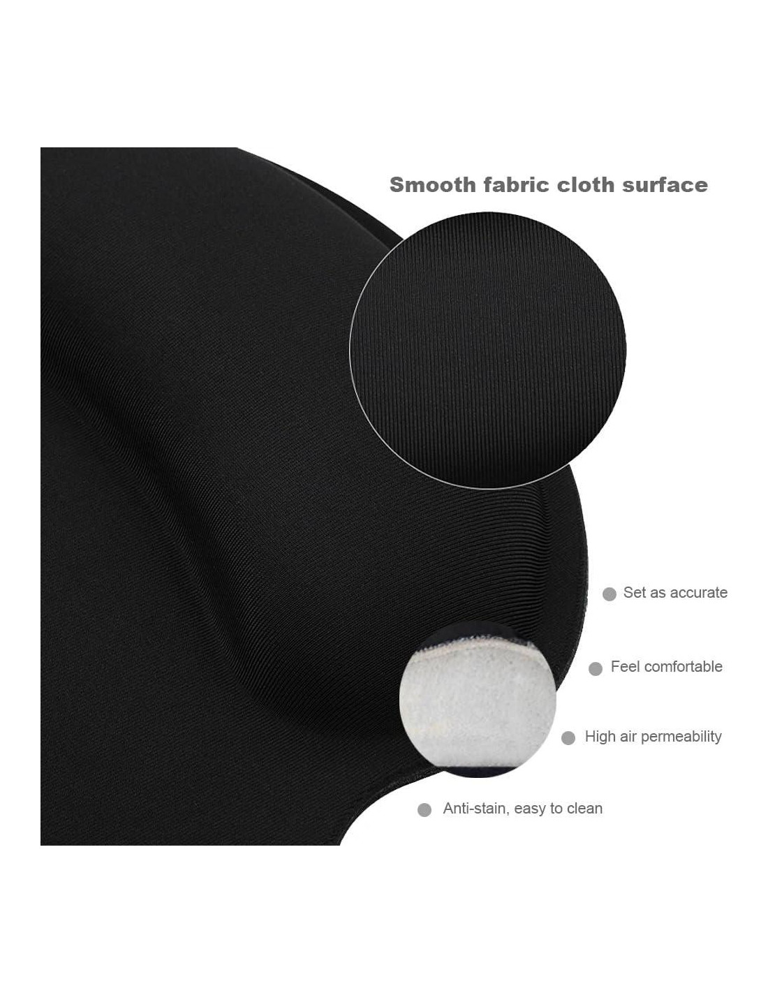 - Cubierta de Tela Suave: La superficie de esta alfombrilla está hecha de tela de Lycra de alta calidad y textura premium que ha sido tratada especialmente en una cámara de alta presión a 110C. Esto resulta en una superficie super suave que proporciona un movimiento del ratón preciso y una precisión milimétrica. Funciona bien con ratones con cable, inalámbricos, ópticos y mecánicos.