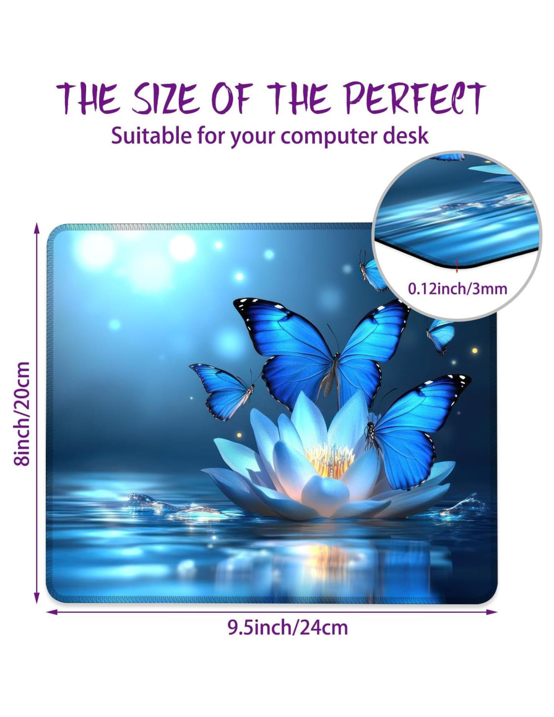 - Tamaño de la Alfombrilla: Esta alfombrilla cuadrada de mariposas azules y loto es compatible con ratones con cable, inalámbricos, mecánicos, láser y ópticos. Tamaño de 24.1*20.3 cm. Portátil y sin preocupaciones sobre deformaciones al enrollarse para almacenamiento