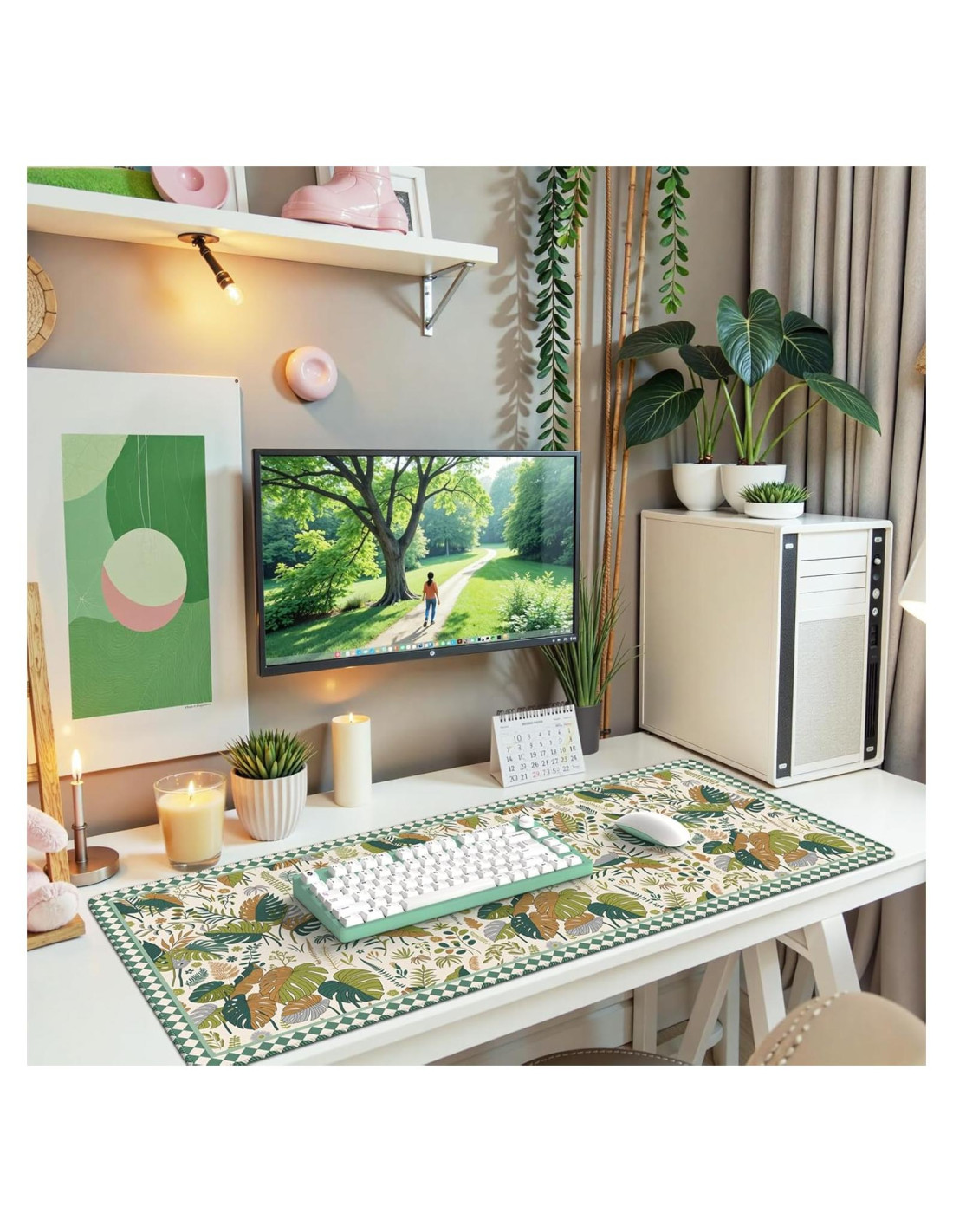 - Parte Trasera Antideslizante - La base de goma antideslizante de la alfombrilla de escritorio para computadora se agarra firmemente al escritorio. Así que no importa cuánto muevas tu ratón y teclado, este protector de cubierta de escritorio se mantiene firmemente en tu escritorio