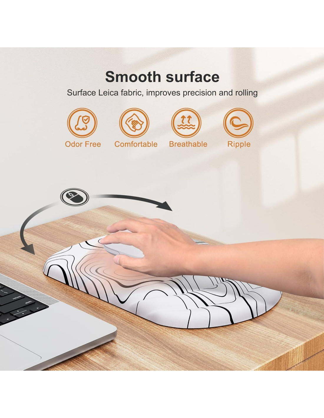 El reposamuñecas ergonómico mantiene tu muñeca alineada mientras lo usas, haciendo que tu experiencia con el ratón sea más cómoda al reducir la tensión en tu muñeca. La alfombrilla de ratón está hecha de un material suave, liso y transpirable, proporcionando un toque ligero, cómodo, duradero y amigable con la piel. El interior está relleno con espuma de memoria de alta calidad, suave y cómoda, para proporcionar soporte adicional y puede recuperarse después de la presión, no es fácil de deformar después de un uso prolongado. Esta alfombrilla de ratón con soporte puede ayudarte a mantener tu muñeca recta y aliviar el dolor de muñeca cuando estás jugando, trabajando, estudiando, etc.