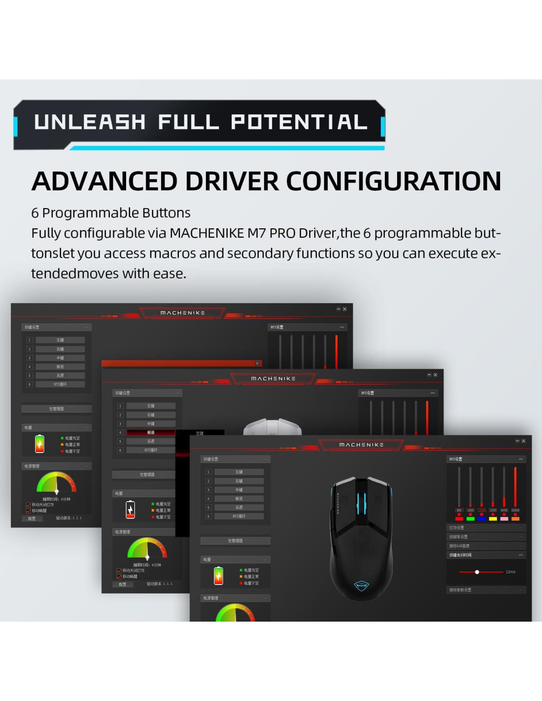 - Personaliza tus necesidades de juego con nuestro ratón programable. El M7 Pro es un ratón para juegos completamente programable. Cada botón es personalizable y admite la edición de macros, lo que te permite reasignar botones y modificar el DPI para satisfacer tus requisitos específicos. Esta característica de ratón inalámbrico para PC satisface todas tus necesidades de personalización, permitiendo una jugabilidad rica.