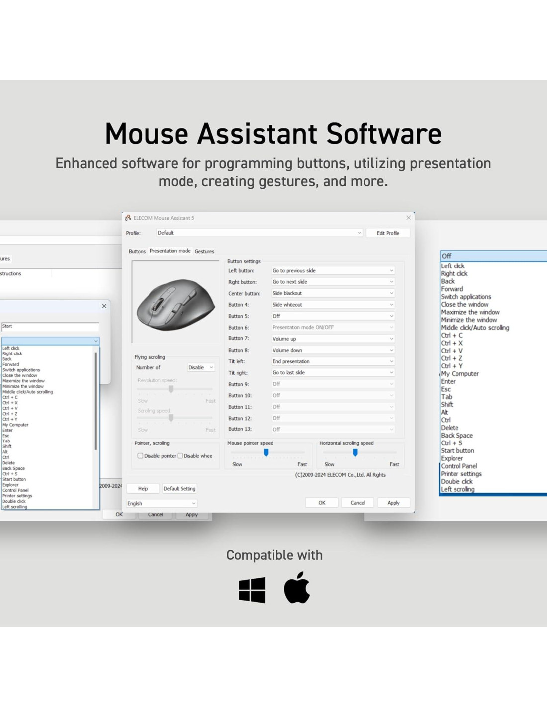 - 8 BOTONES FUNCIONALESPuedes asignar funciones favoritas a cada botón utilizando "ELECOM Mouse Assistant". El software ELECOM Mouse Assistant estará disponible para descargar desde el sitio web de ELECOM NET.