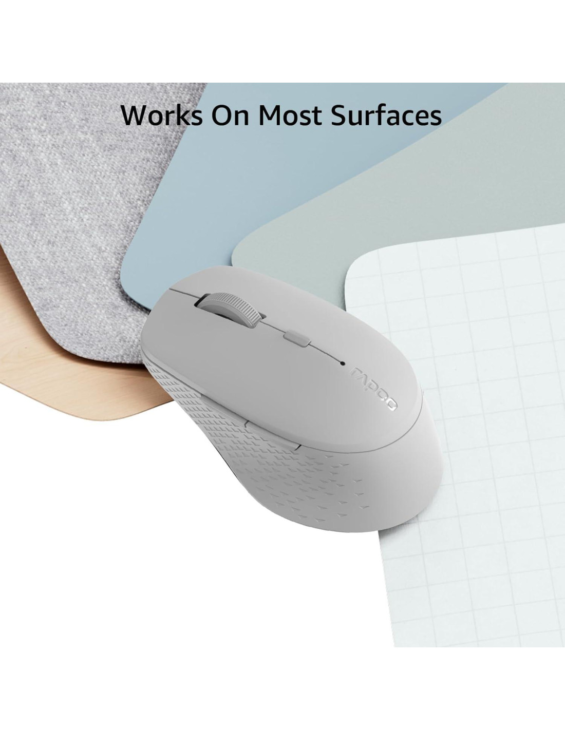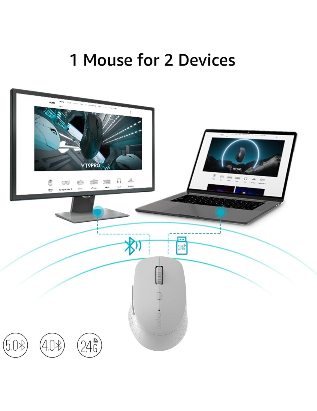 - [Fácil de Soportar 2 Dispositivos] El Rapoo M300G es un Ratón Inalámbrico de Múltiples Modos (BT5.0 + 2.4GHz), realiza cambios libres entre 2 dispositivos. Simple y conveniente para trabajar desde el escritorio hasta la laptop.