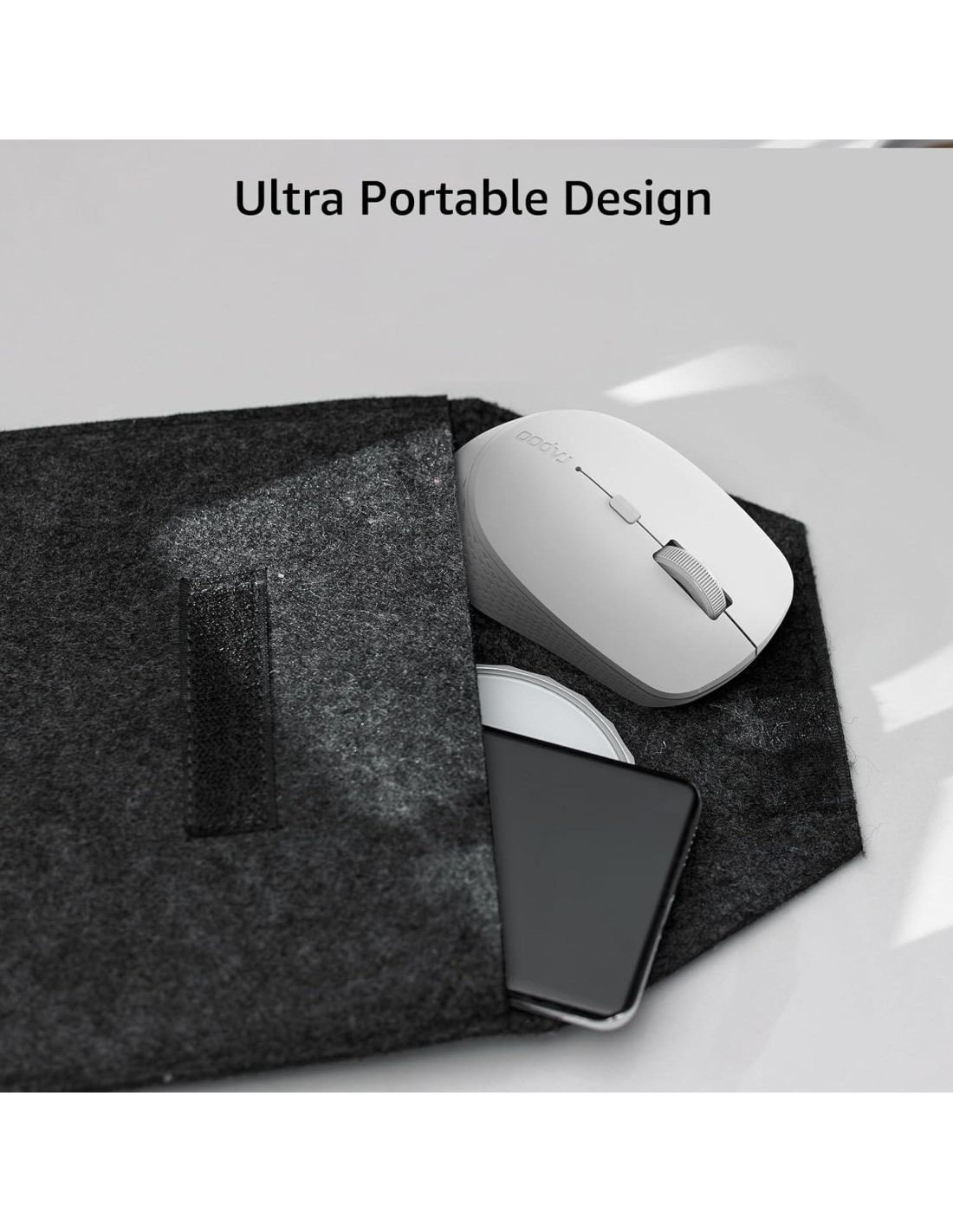 - [Diseñado para la Comodidad y Seguimiento Óptico Avanzado] El ratón bluetooth Rapoo está diseñado para la mano derecha, la curvatura plana se ajusta a la curva de la mano. Alivio de la fatiga, adecuado para uso durante todo el día. Motor óptico de alta precisión, se puede usar sin una alfombrilla de ratón en varias superficies como cuero, tela, papel, escritorio, madera o resina.