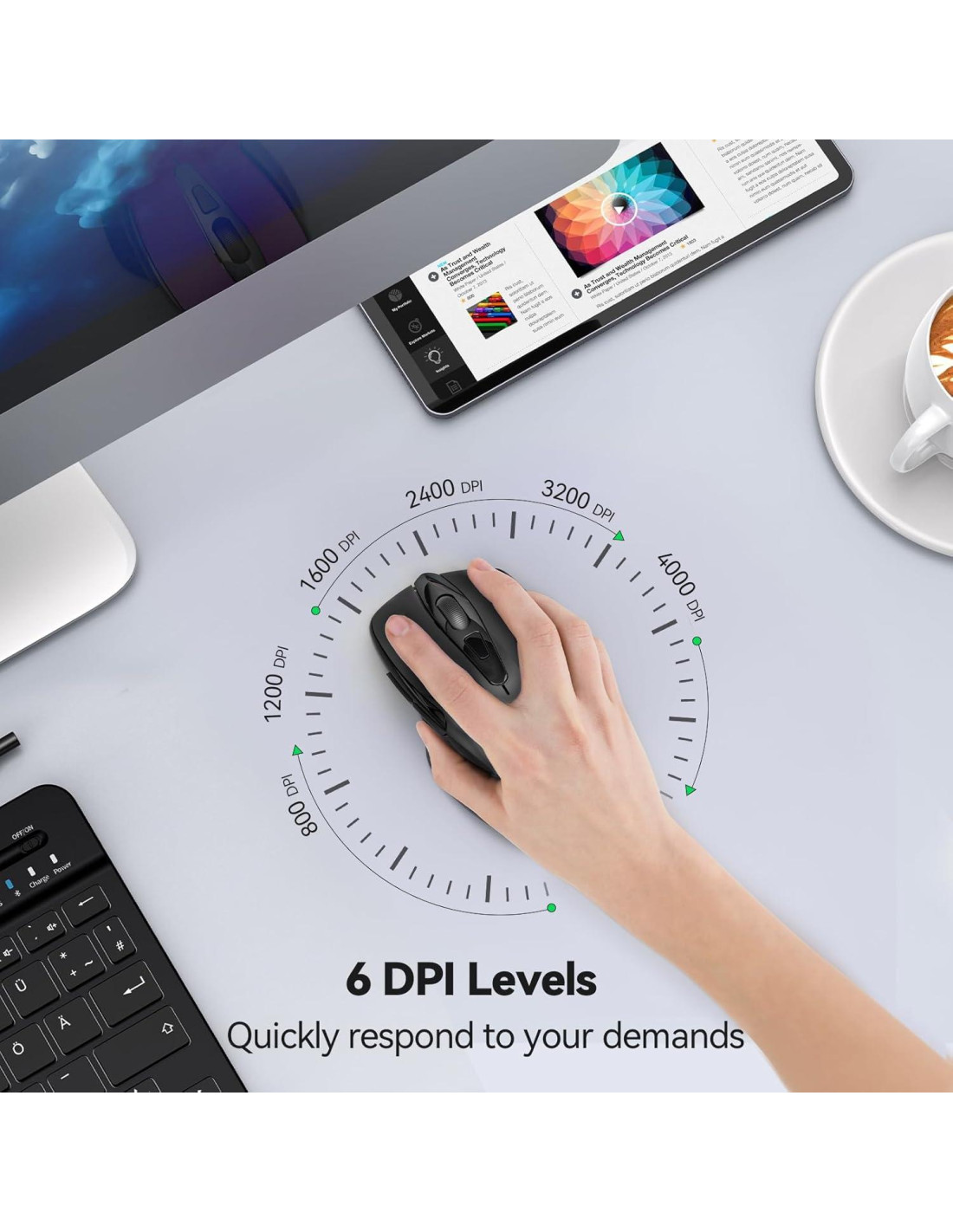 - [6 DPI Ajustables] : El ratón de computadora TECKNET tiene 6 niveles de DPI ajustables 800/1200/1600/2400/3200/4000 para que cambies la sensibilidad según tus actividades.