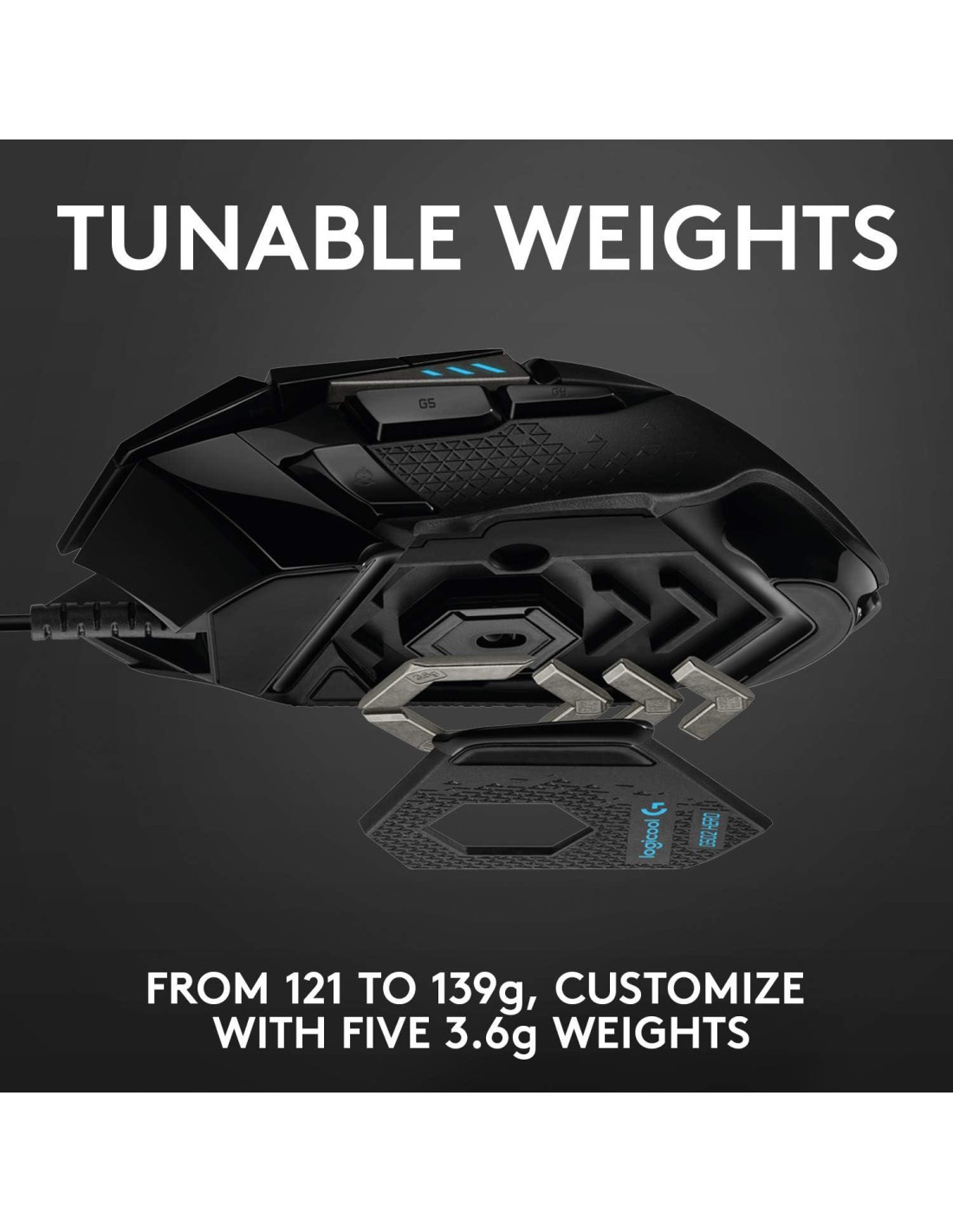 G502 HERO cuenta con un sensor óptico avanzado para una máxima precisión de seguimiento en todo el rango de DPI, iluminación RGB personalizable, perfiles de juego personalizados, sistema de peso ajustable. El sensor HERO de próxima generación ofrece un seguimiento preciso de hasta 25,600 DPI sin suavizado, filtrado o aceleración. 11 botones programables y una rueda de desplazamiento hiperrápida de doble modo te brindan un control totalmente personalizable sobre tu juego. Personaliza a tu favor. Cinco pesas de 3.6g vienen con tu G502 HERO. Usa algunas o todas en las posiciones donde prefieras más peso o menos para la sensación justa. Con la tecnología LIGHTSYNC y Logitech G HUB, la iluminación RGB se puede personalizar de aproximadamente 16.8 millones de colores para personalizar tu configuración y sincronizar con otros equipos de G. LIGHTSYNC RGB reacciona inteligentemente con tu juego, audio o color de pantalla. Configura la iluminación en ~16.8M colores para que coincida con tu habitación y equipo. Crea tus propias animaciones RGB personales.