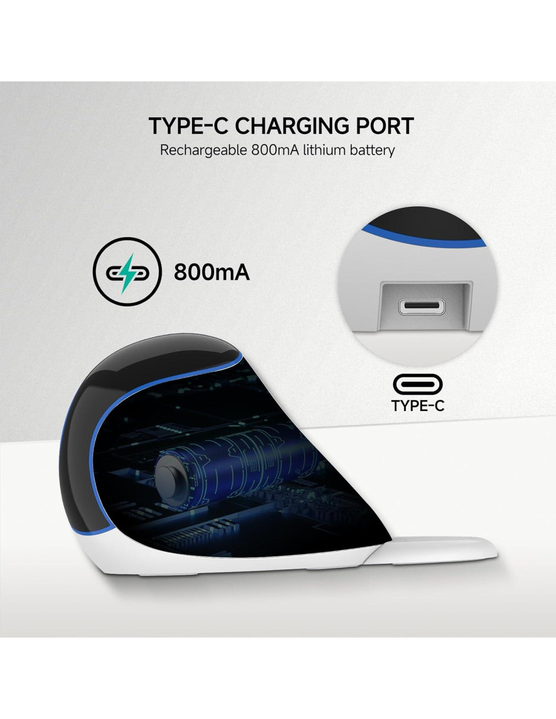 - Batería Recargable y DPI Ajustable: Cuenta con una batería de litio integrada completamente recargable a través de USB-C (se proporciona cable de carga). Alterna entre modos de 800, 1200, 1600, 3200 DPI según tu preferencia respecto a la sensibilidad del ratón