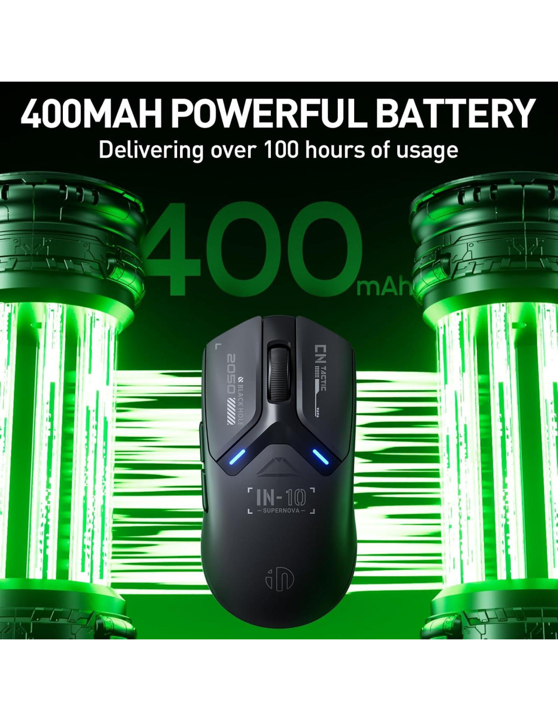 - [Compatible con Windows, macOS, Linux, este ratón gaming funciona en PC, laptops y tabletas. El paquete incluye: ratón IN10P*1; receptor USB Nano 8K*1; adaptador de extensión de receptor*1; cable trenzado tipo C de 1.8m*1; manual de usuario*1; cinta antideslizante para ratón*1 set.