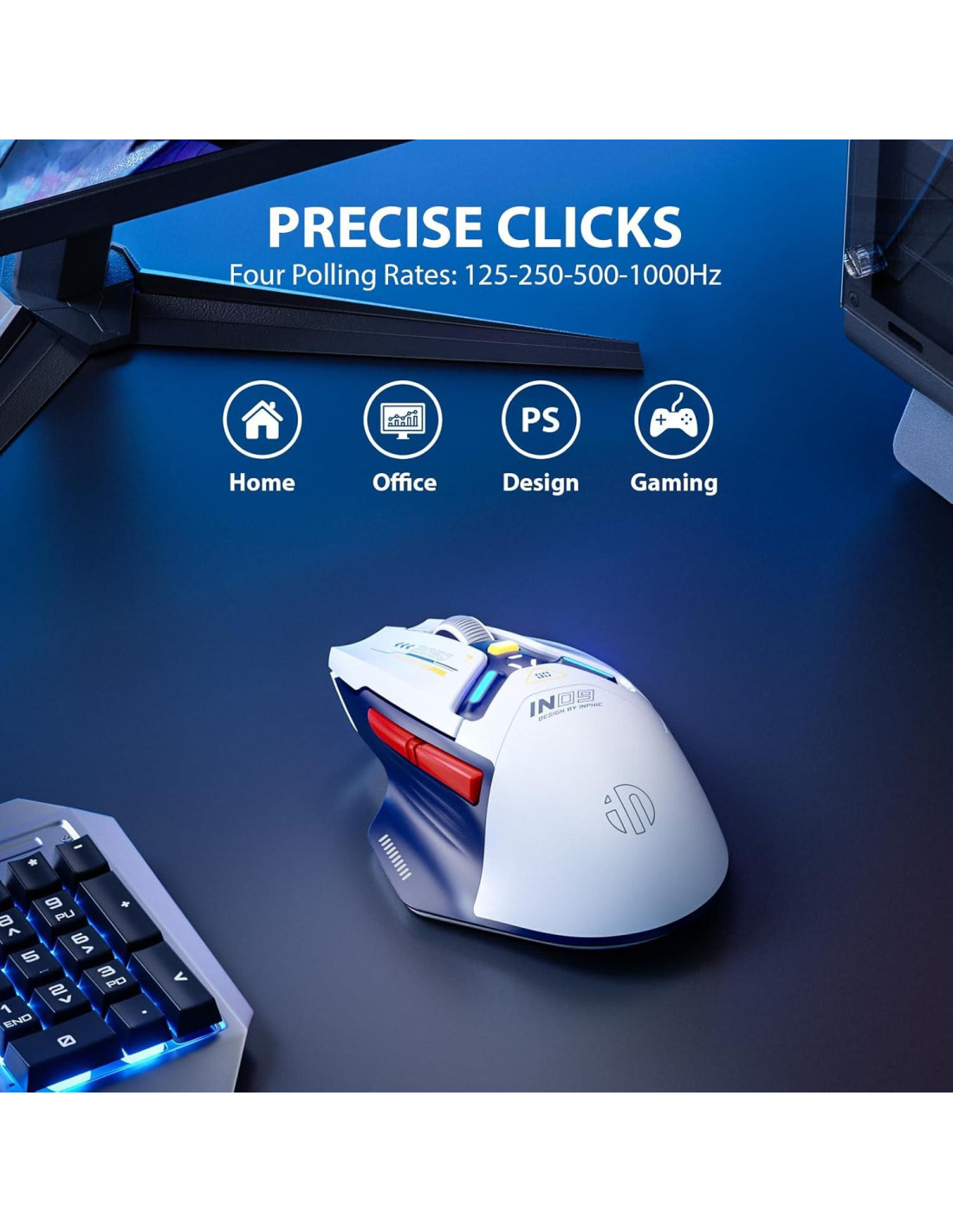 - [Controles Personalizables y Memoria Integrada] Este ratón gaming por cable/inálambrico con 6 botones programables, los usuarios pueden personalizar comandos y macros utilizando el controlador personalizado de Inphic (solo para Windows). La memoria integrada almacena estas configuraciones, facilitando transiciones sin problemas entre dispositivos.