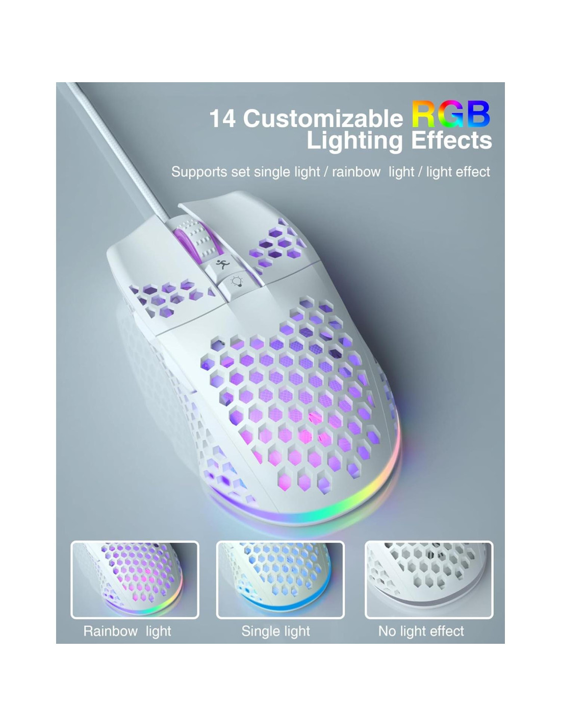 - Diseño de Carcasa de Panal de 3 Lados: El ratón con cable SM900 es más transpirable, más absorbente de sudor y más cómodo. El ratón gaming está hecho de material ABS de alta calidad y diseñado con una carcasa ergonómica perforada, el diseño ergonómico reduce el peso y hace que el ratón sea más flexible y fácil de usar durante mucho tiempo sin fatiga, y también mejora las características de disipación de calor, muy cómodo de usar