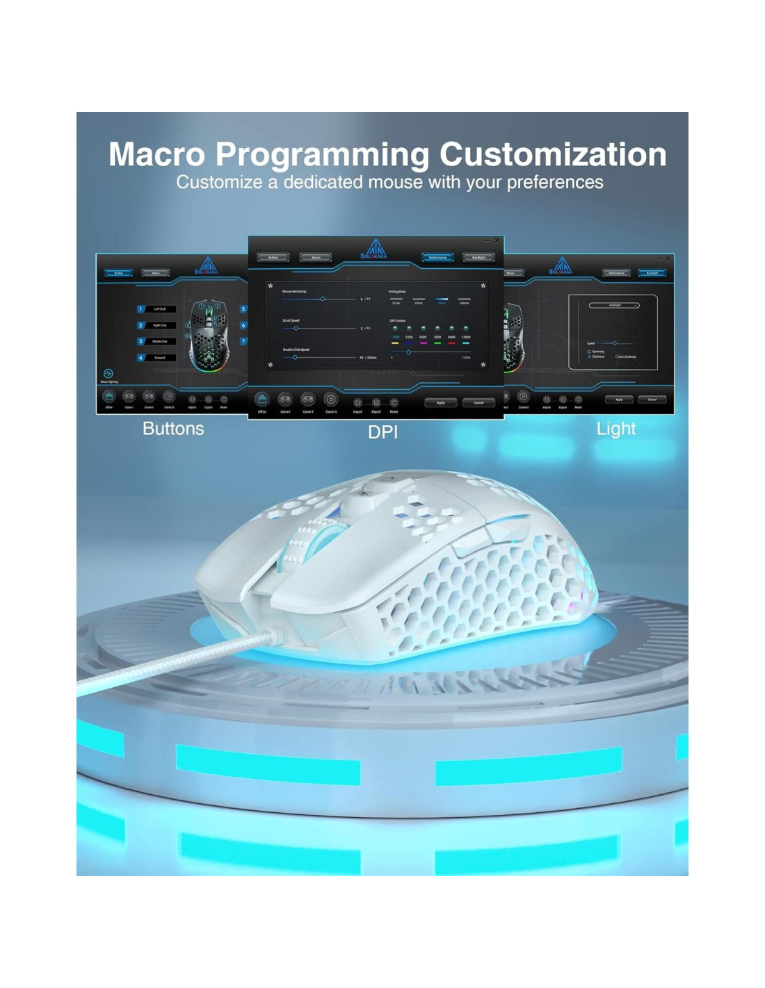 - Soporte para Programa Personalizado y Macro: El ratón con cable SM900 liviano soporta configuraciones macro, el usuario puede restablecer los botones del ratón, DPI, modos, efectos de iluminación. Personaliza el ratón gaming según las preferencias del usuario. Este ratón es ampliamente compatible con Windows 7, 8, 10, XP, VISTA, MAC OS, etc. La interfaz USB es plug and play