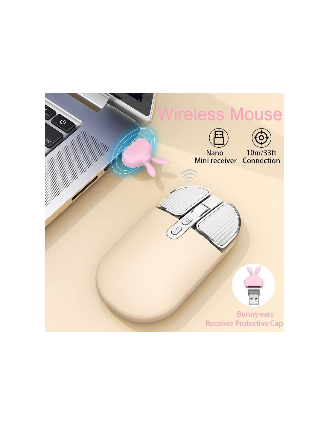 - [Ratón Ultra Delgado y Diseño Delicado] Este ratón delgado (112*60*26mm / 4.4*2.4*1pulgadas) con un encantador diseño de forma de conejo y viene con una tapa de receptor USB con forma de oreja de conejo, además, combinando con colores novedosos: verde pasta de frijol, polvo de vitalidad, color té con leche, azul cielo, blanco nieve para elegir, adecuado para jóvenes modernos y niños. Hace que sea más agradable de usar en la oficina o en casa