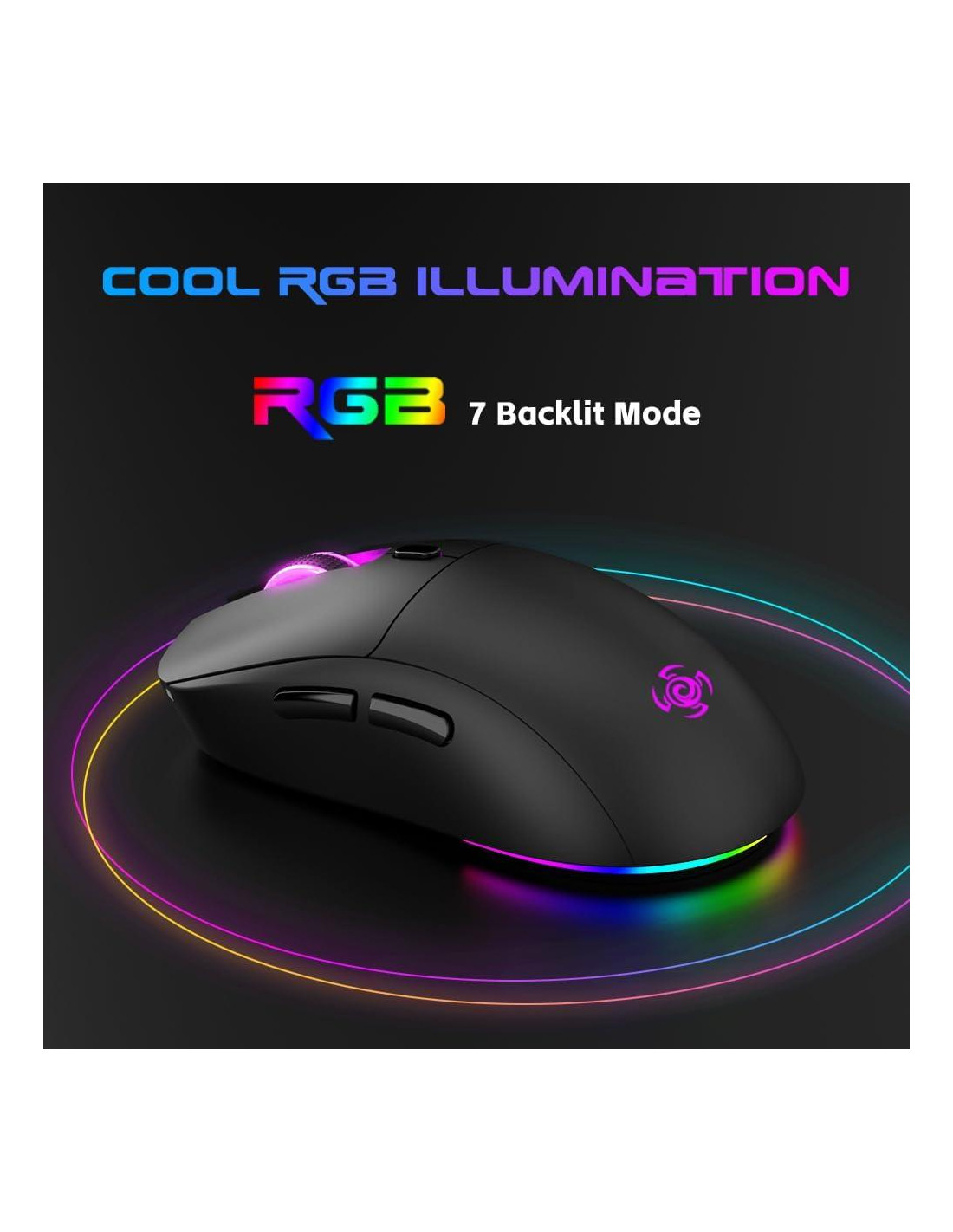 - Impresionantes luces RGB que respiran: La luz en la parte inferior del ratón gaming RGB tiene un efecto de arcoíris único. Cambia entre 7 modos de iluminación con un solo botón, personalizando tu espacio de juego para reflejar tu estilo. Su forma compacta y tamaño portátil hacen que el ratón sea fácil de poner en una mochila, bolso o bolsillo, y usar en cualquier momento y lugar.