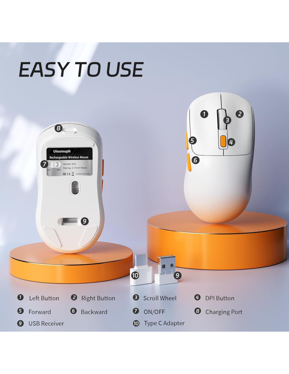 - Recargable por USB C: Este ratón inalámbrico tiene una batería recargable incorporada, simplemente cargue el ratón con el cable de carga Tipo C (incluido), no es necesario cambiar las baterías.