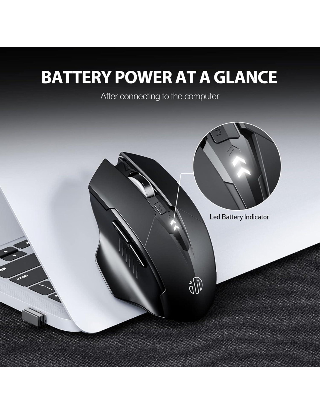 - [INDICADOR DE BATERÍA VISIBLE DE UN VISTAZO] Indicador de batería visible mejorado en la parte superior del diseño del ratón, de un vistazo, sabrás la batería restante, así como una indicación de cuándo es el momento de recargar. Di adiós a la ansiedad por la falta de energía y dale una sensación de seguridad