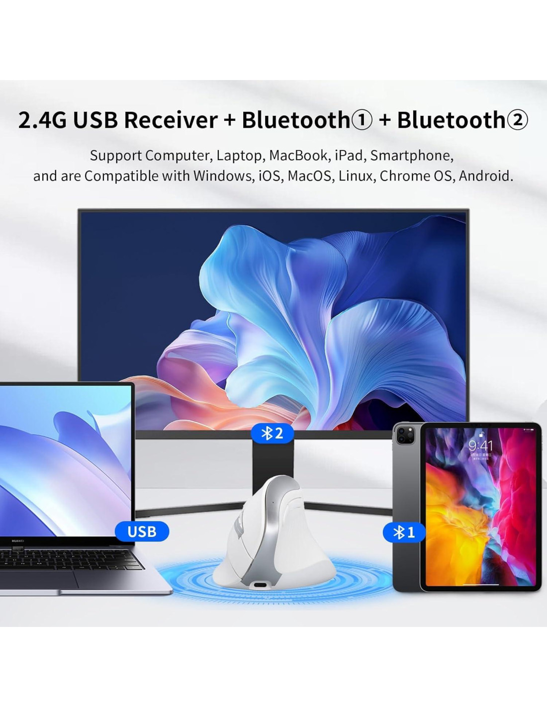 - Tres canales de conexión inalámbrica, adecuados para múltiples dispositivos (receptor USB 2.4G, Bluetooth 1, Bluetooth 2), soporta el cambio entre múltiples dispositivos.