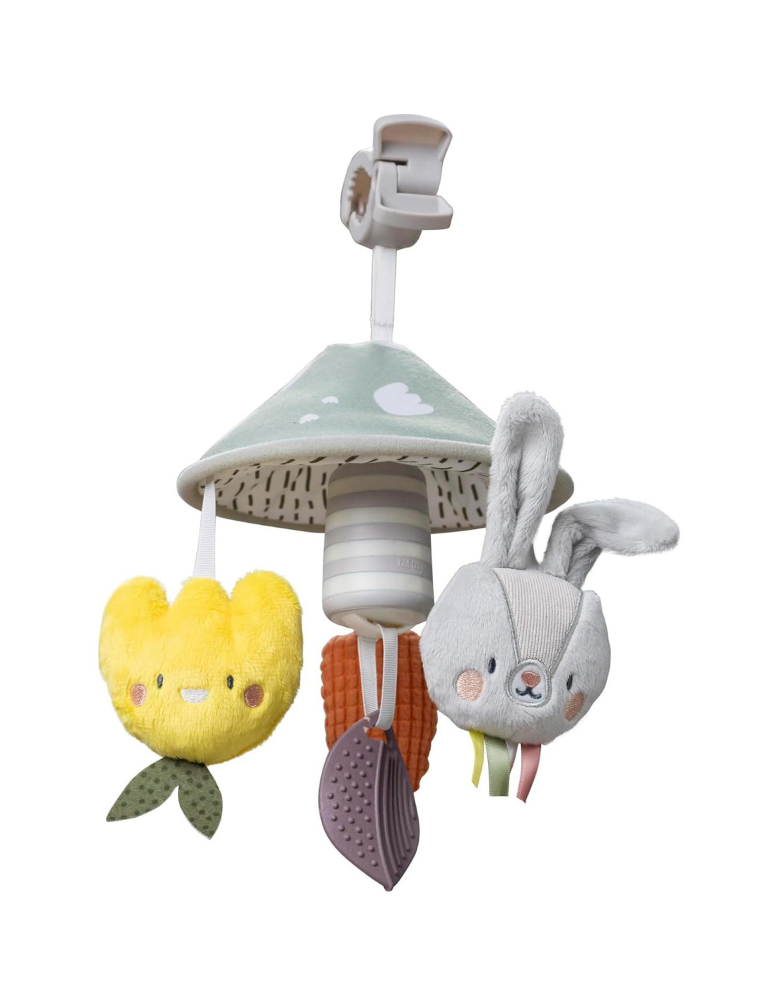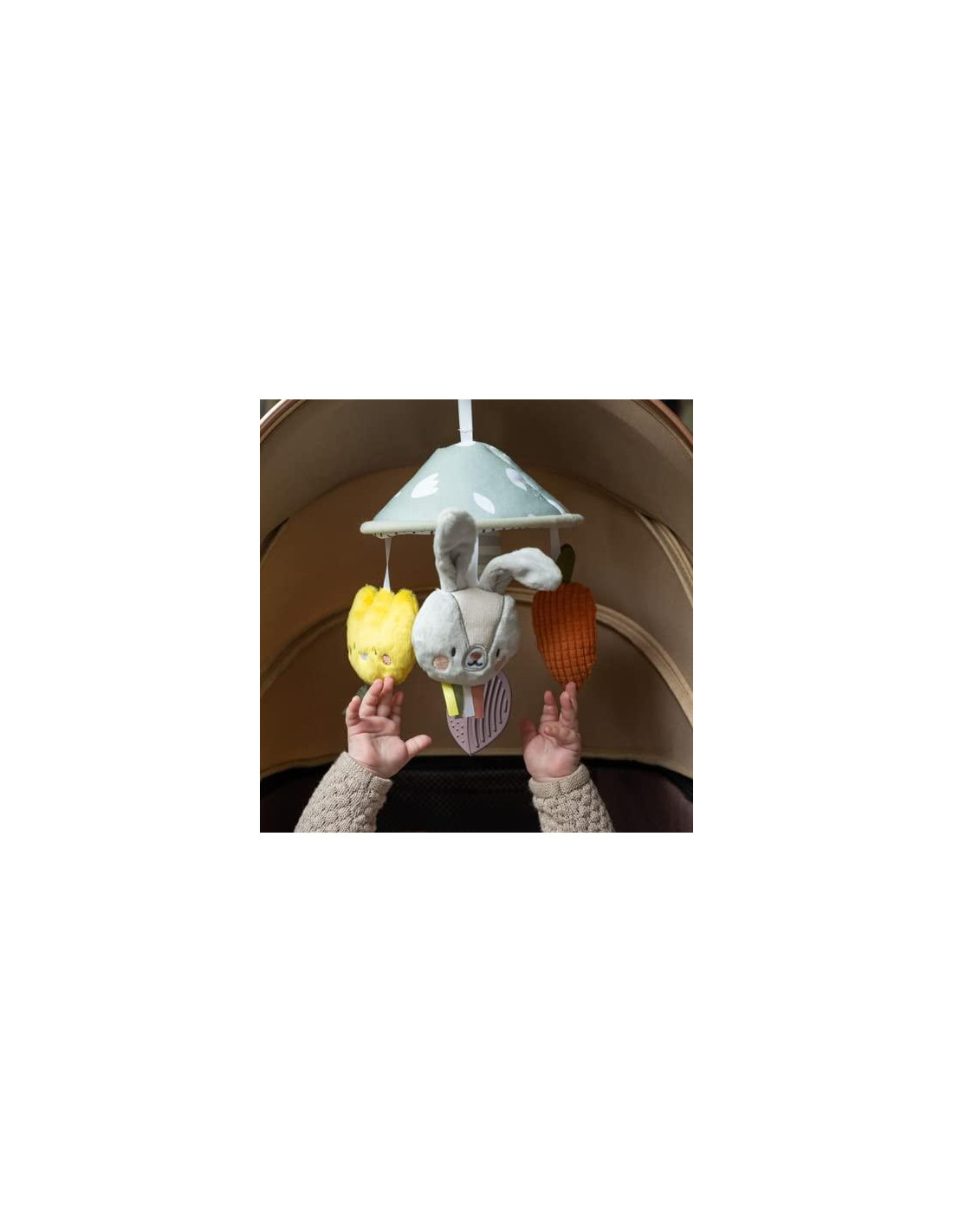 - Diseño Interactivo - El móvil para cochecito Taf Toys cuenta con una variedad de elementos que incluyen a Rylee el conejito, una zanahoria y tulipanes colgantes, que cuelgan de un dosel verde. Este diseño colorido e interactivo es perfecto para entretener y estimular a los bebés mientras están en sus cochecitos, sillas de paseo o asientos de auto.