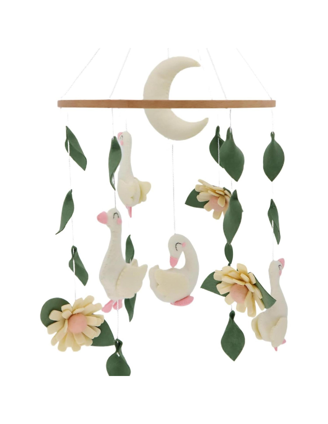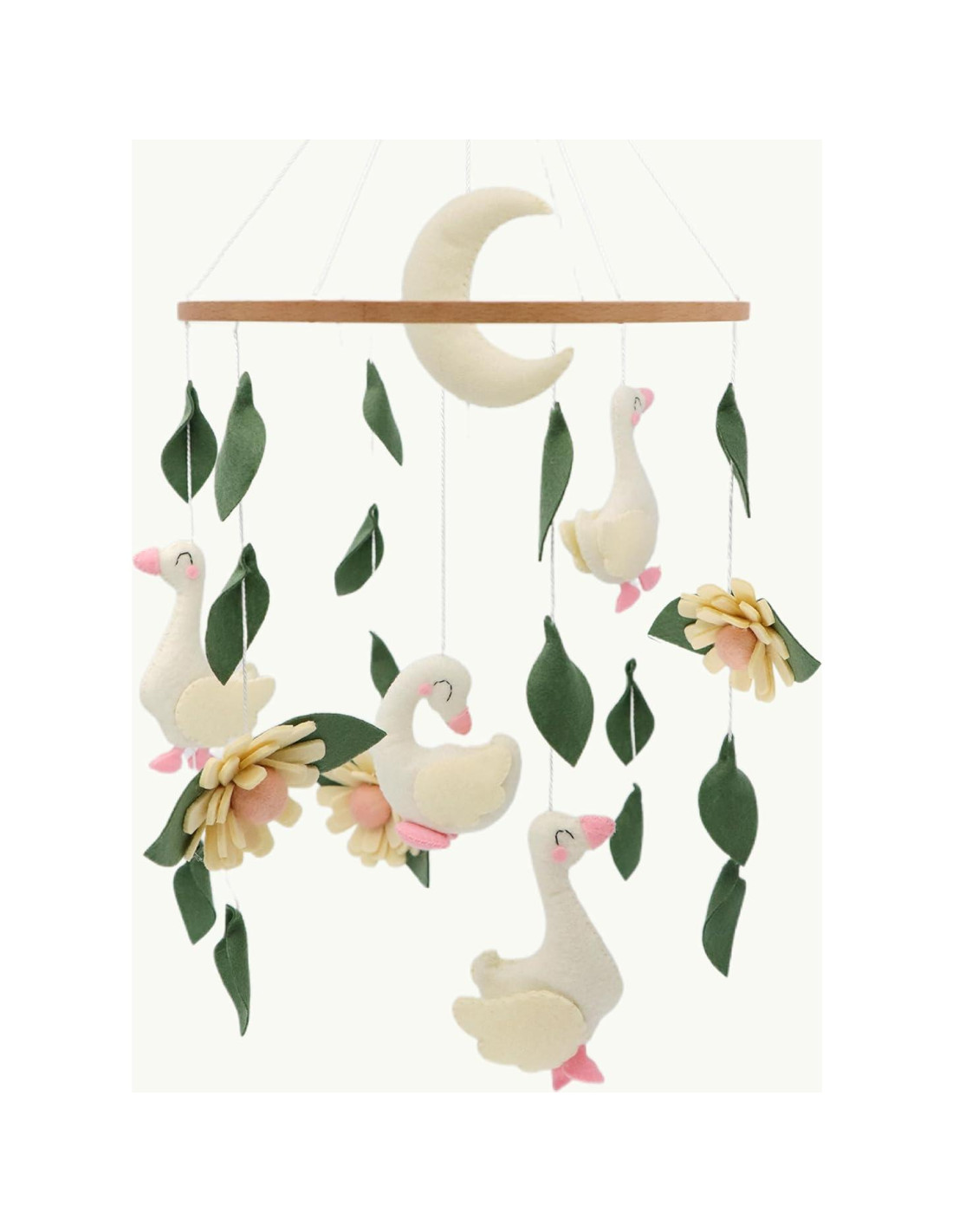 - Móvil de Ganso para una Guardería de Cuento de Hadas: ¡Transforma la cuna de tu pequeño en un retiro de cisnes con nuestro Móvil de Bebé Temático de Ganso! Nuestro móvil de ganso para cuna presenta adorables elementos de móvil de cuna de ganso: ganso, luna, hoja verde y margarita. Este móvil caprichoso presenta elegantes cisnes deslizándose sobre hojas verdes, luna brillante y delicadas margaritas. La suave paleta de marfil, rubor y verde esmeralda crea una atmósfera soñadora y relajante, perfecta para arrullar a tu bebé mientras nutre su sentido de asombro.