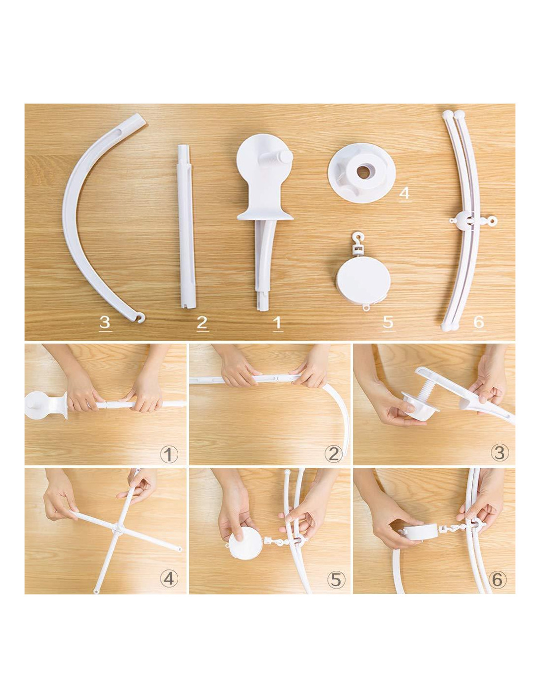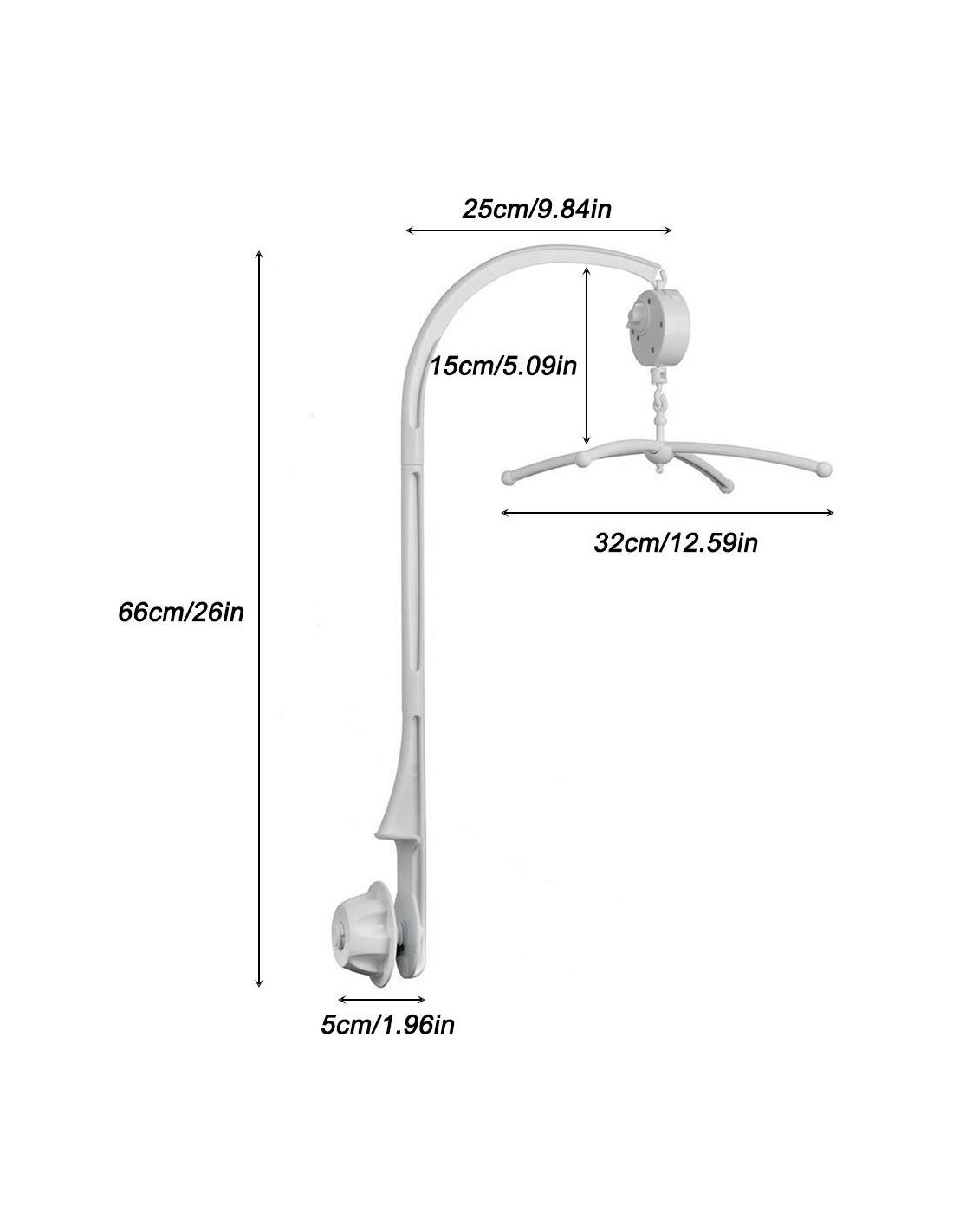Este es el nuevo soporte de brazo para móvil de cuna + caja de música de cuerda con canciones, con música suave ayuda a su bebé a dormir más fácilmente, fácil operación y uso conveniente, se enganchará y rotará mientras reproduce música, y puede pausar mientras reproduce. Especificación: Tamaño: 66 cm x 33 cm (25.98 in x 12.99 in) Diámetro de la caja de música: 7 cm (2.76 in) Color: Blanco Peso del paquete: 320 g (11.29 oz) La altura total del soporte de móvil de cuna: 66 cm (25.98 in)