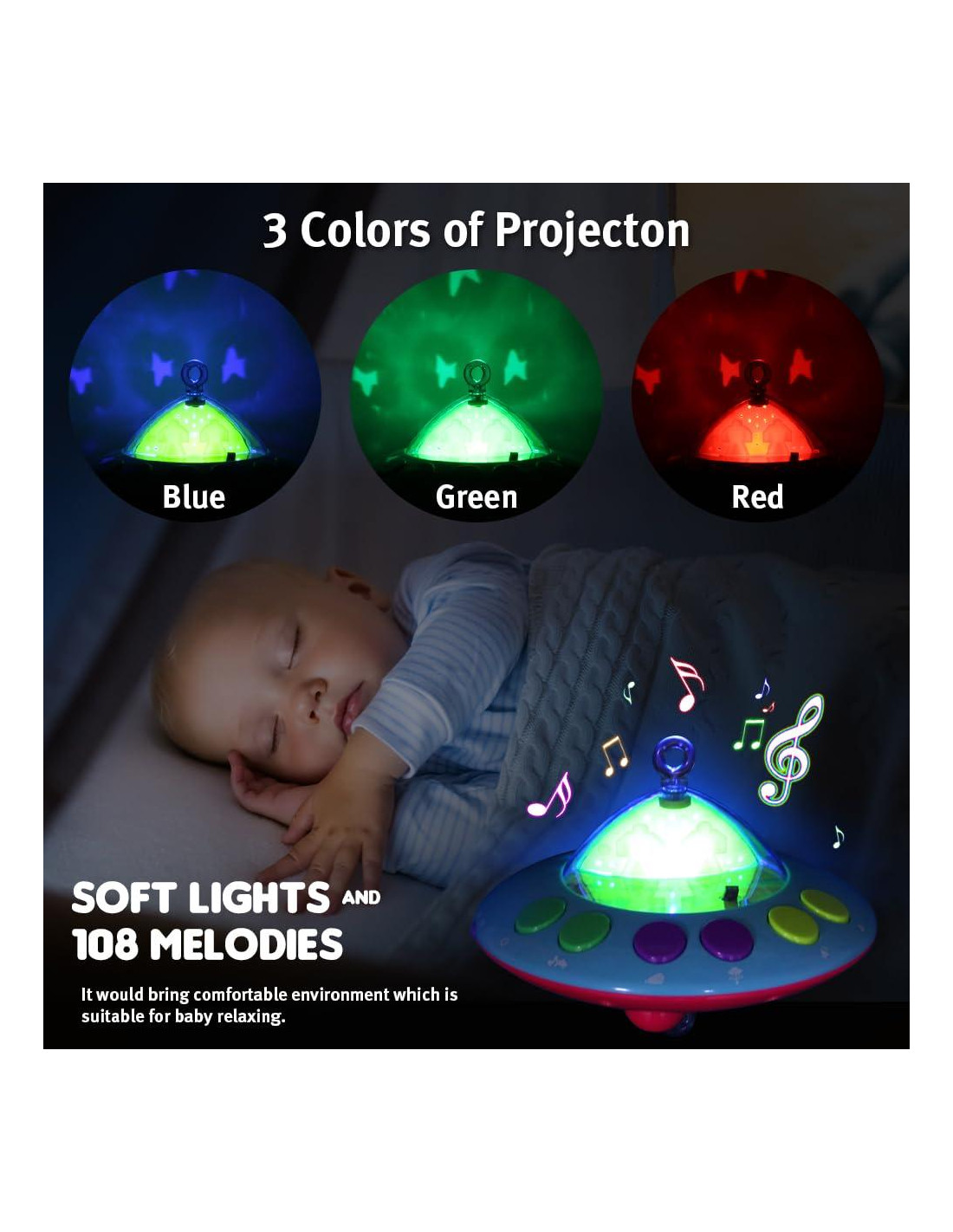 - Función Musical y Función de Proyector de Estrellas: El proyector de luz nocturna puede proyectar luz en la pared y reproducir 108 canciones diferentes. De modo que el bebé pueda ver el hermoso cielo estrellado y disfrutar de una maravillosa música. Cambia automáticamente entre 3 colores de cielo estrellado para mejorar el entorno de sueño de tu pequeño.