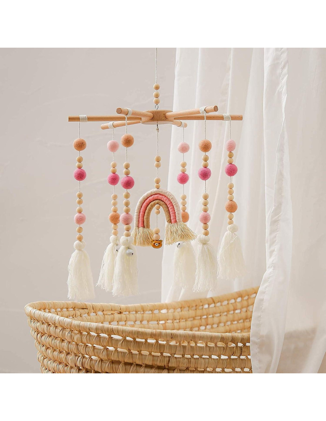 - DESMONTABLE Y AJUSTABLE - Móvil para bebé hecho a mano elaborado con madera orgánica. Los componentes de madera son desmontables y están diseñados para equilibrarse entre sí. La campana de la cuna cuenta con una línea ajustable para mantener el equilibrio.