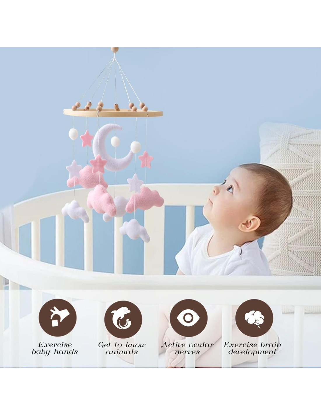 - Mejora la Estimulación Visual y Sensorial----La suave luna de algodón, estrellas y nubes se mecen suavemente para captar la atención del bebé, promoviendo el desarrollo sensorial temprano y las habilidades de seguimiento visual