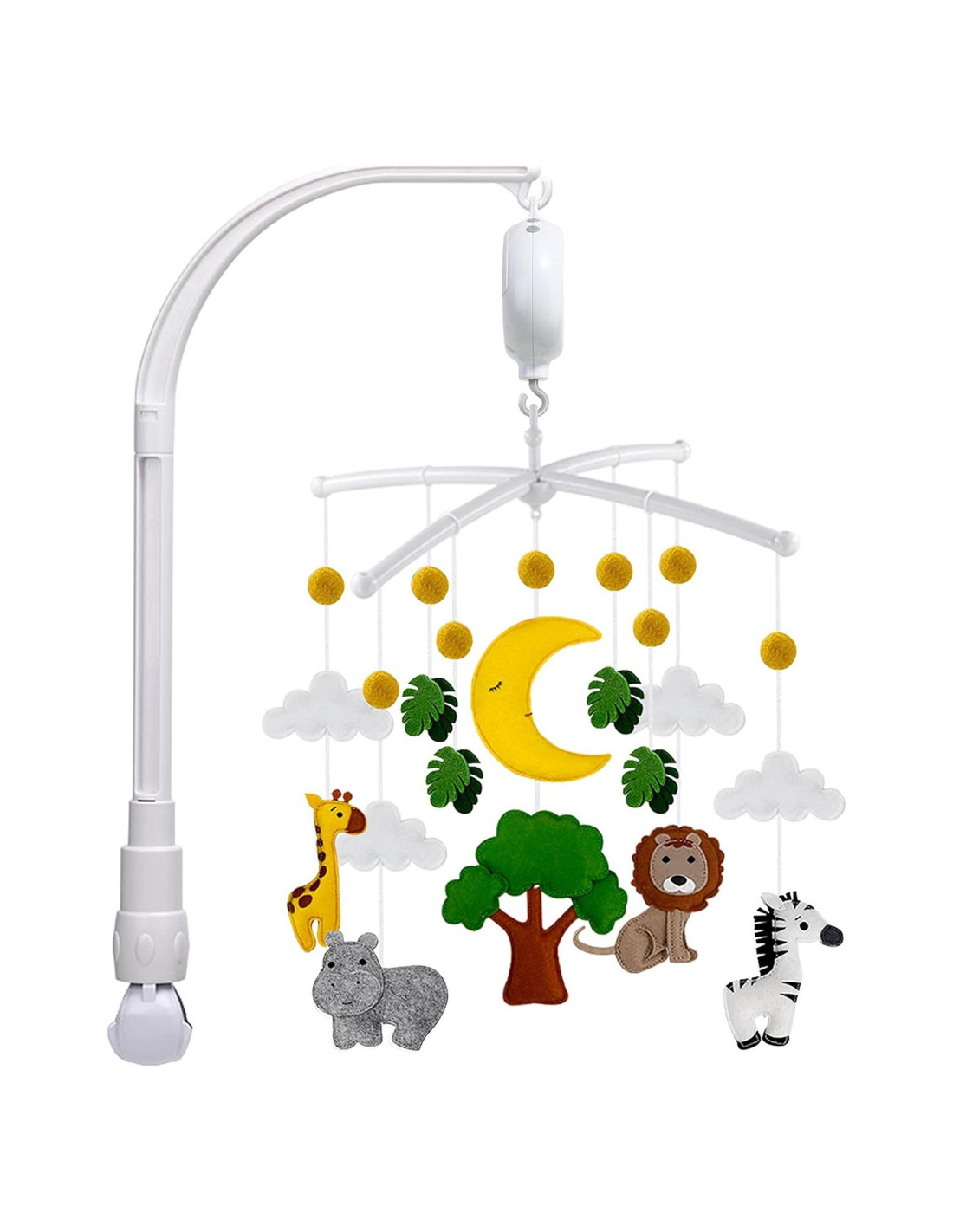 - Diseño interesante - Tiene jirafa, cebra, león, hipopótamo rodeados de árboles, luna y nubes, y es muy colorido. El móvil de bosque podría usarse como parte de la decoración de la habitación con el tema 'animal' o 'Safari'. ¡También es un excelente regalo para baby shower!