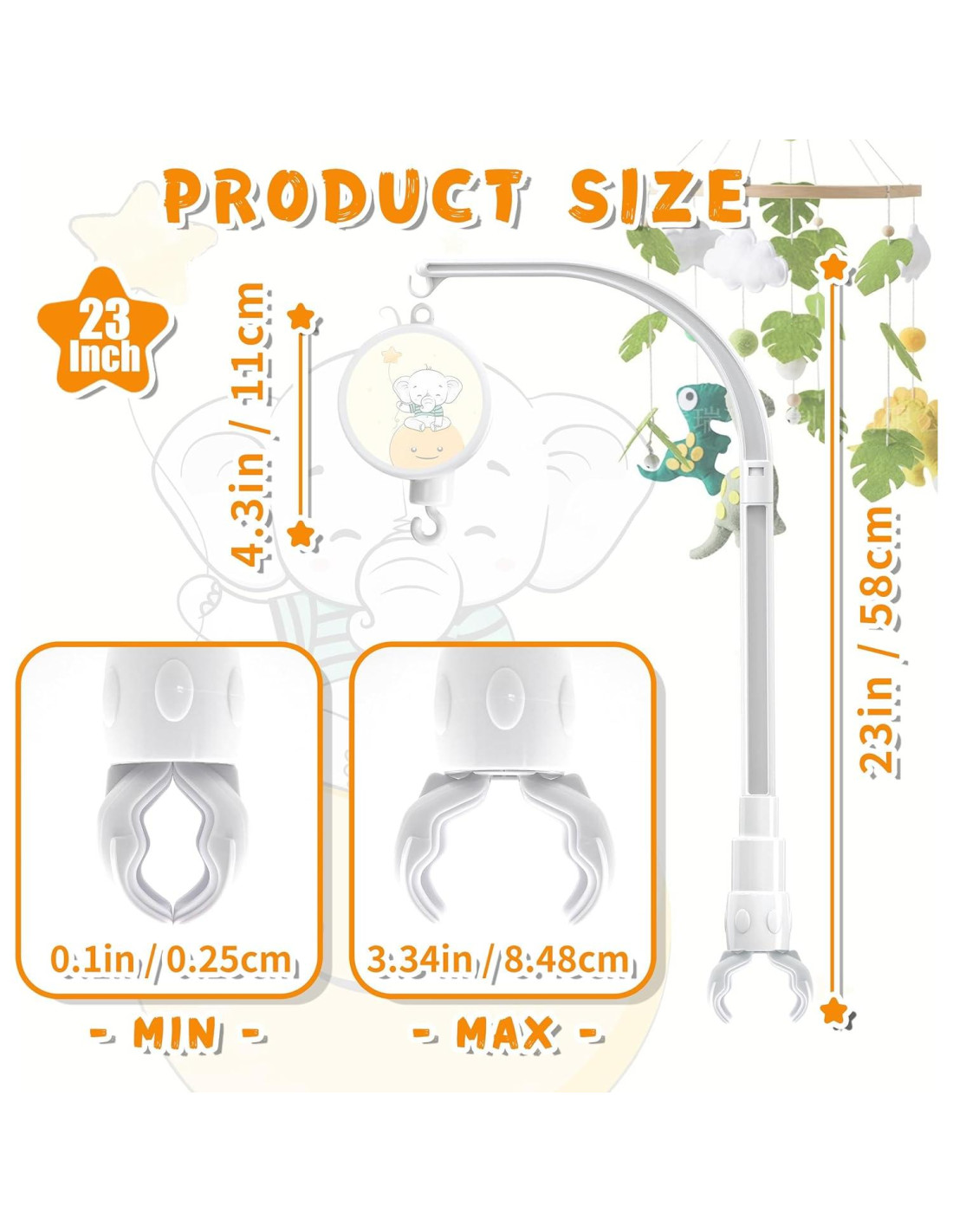 - ÁNGULO AJUSTABLE: Cuenta con un brazo ajustable de 23 pulgadas (58.42 cm) con un agarre de garra de 3.34 pulgadas (8.49 cm) que rota 30 en cualquier dirección. Compatibilidad universal con la mayoría de las cunas (incluidos los modelos convertibles), mesas de cambio y todos los móviles para bebés estándar.