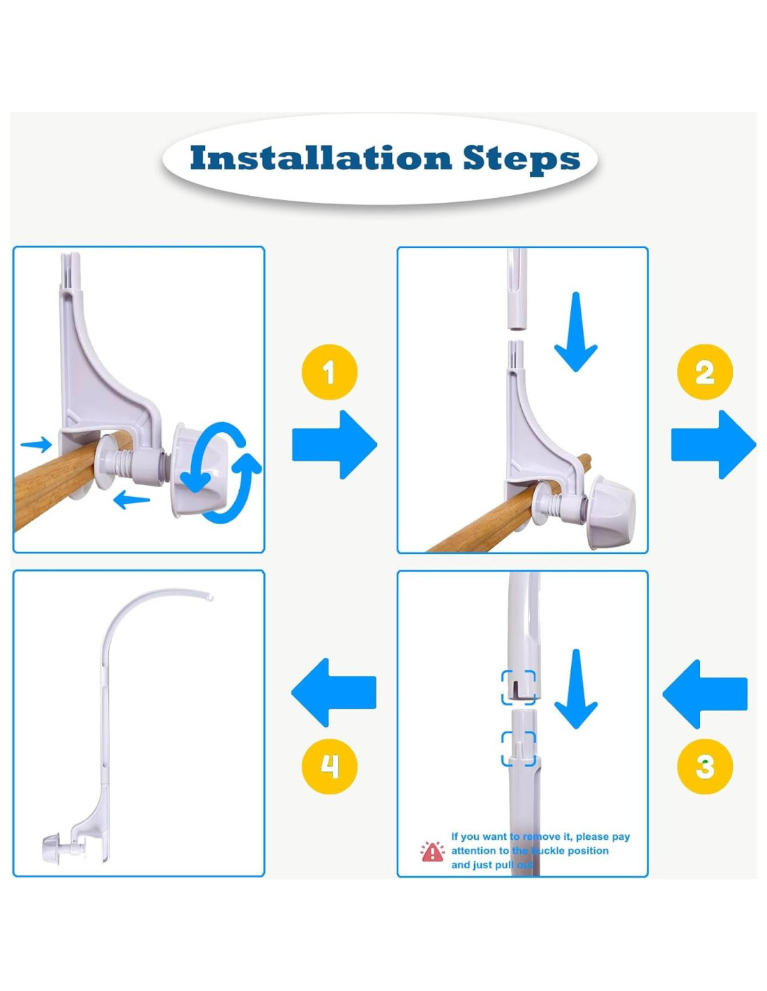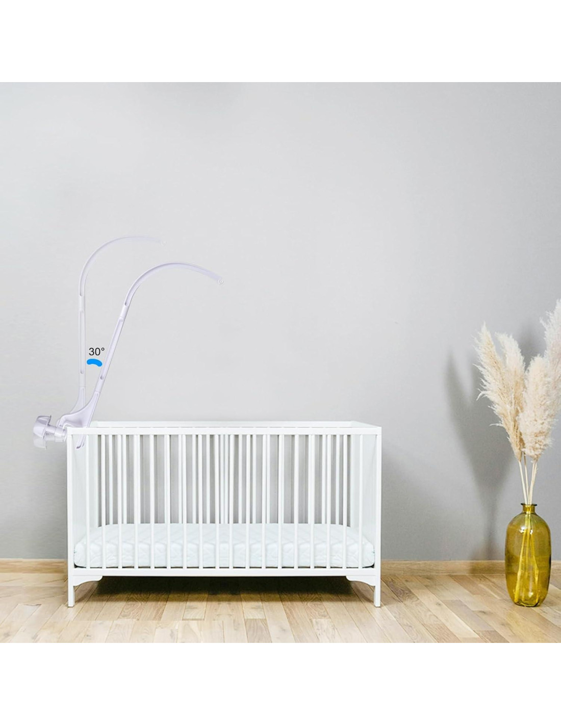 - El soporte para móvil de cuna de bebé mide 24 pulgadas (60.96 cm) de largo. La apertura del soporte del móvil para bebé es de 1.57 pulgadas (3.99 cm). Este nuevo diseño ajusta el brazo del móvil de cuna con garra que puede sujetar la cuna con más seguridad.