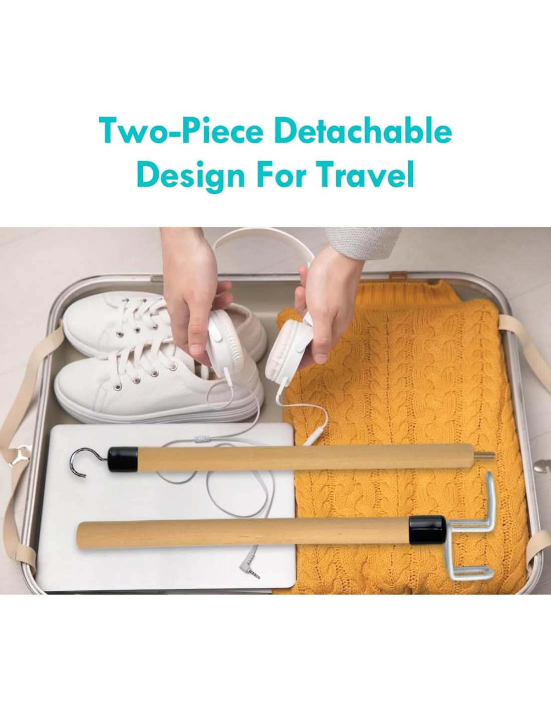 - DISEÑO DE DOS PIEZAS: Gire para ensamblar y separar el palo de vestir en dos piezas para un almacenamiento compacto y fácil portabilidad para viajar.