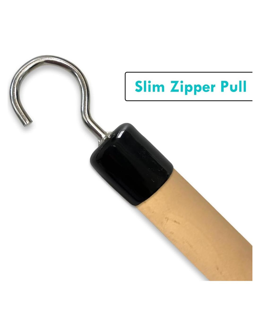 - GANCHO DE VINILO PROTECTOR: El palo de ayuda para vestirse está recubierto con vinilo protector. El gancho de empujar/tirar agarra suavemente la tela para evitar que se deslice, ideal para ponerse/quitarse zapatos, camisas, chaquetas y pantalones, minimizando la flexión, torsión o alcance. El gancho de metal delgado en forma de "C" en el extremo opuesto para tirar de cremalleras y lazos de cordones.
