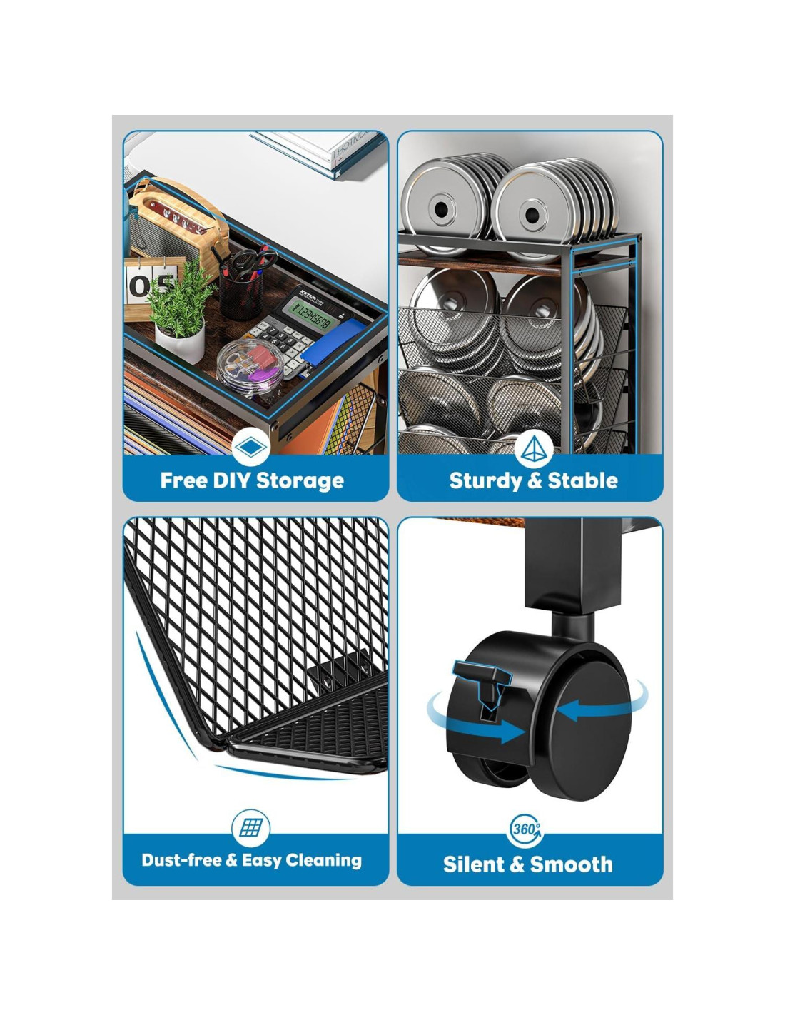 - Verdadero Ahorro de Espacio Tamaño compacto y ruedas hacen que el carro de archivos con ruedas sea fácil de mover y almacenar en espacios estrechos, ideal para almacenamiento de archivos en oficina o oficina en casa, también como carro de libros rodante en rincones, habitaciones de niños o aulas, ¡todo en una utilidad y estilo!