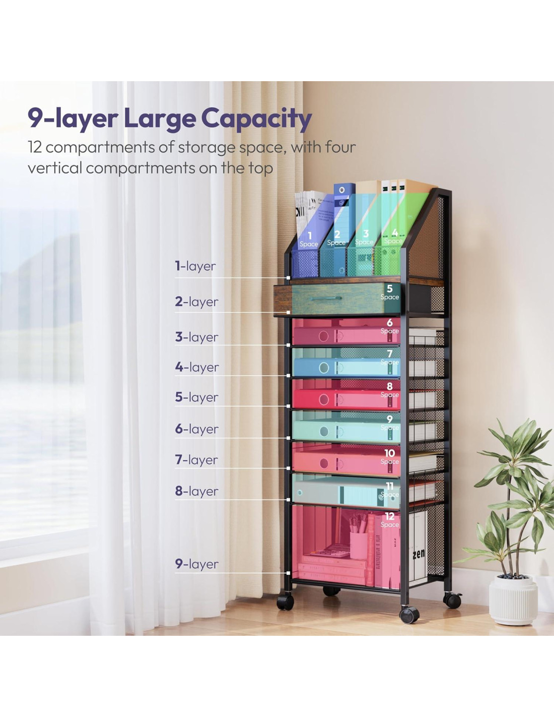 - [Perfecto para Cualquier Espacio]: Compacto pero espacioso, este organizador de carro rodante funciona para archivos, libros y suministros. El soporte de papel es un clasificador de papel versátil, estante para carpetas y solución de almacenamiento todo en uno