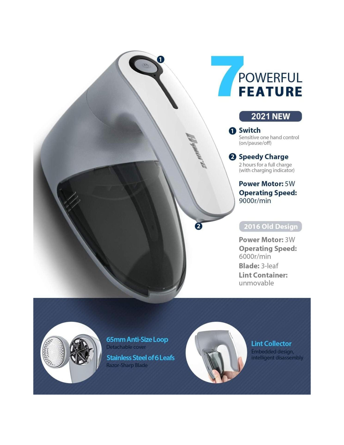 - CUIDA LA TELAS METICULOSAMENTE: Cuando la tapa está suelta o retirada, la afeitadora de suéter se detendrá automáticamente para prevenir peligros o daños al material; Las cuchillas hechas a medida añaden protección extra para asegurar el espacio de la tela no deseada mientras se recorta; La malla de acero inoxidable no deformable reduce efectivamente la fricción de la ropa; Hecho de material no inflamable con chip IC inteligente para asegurar un uso seguro