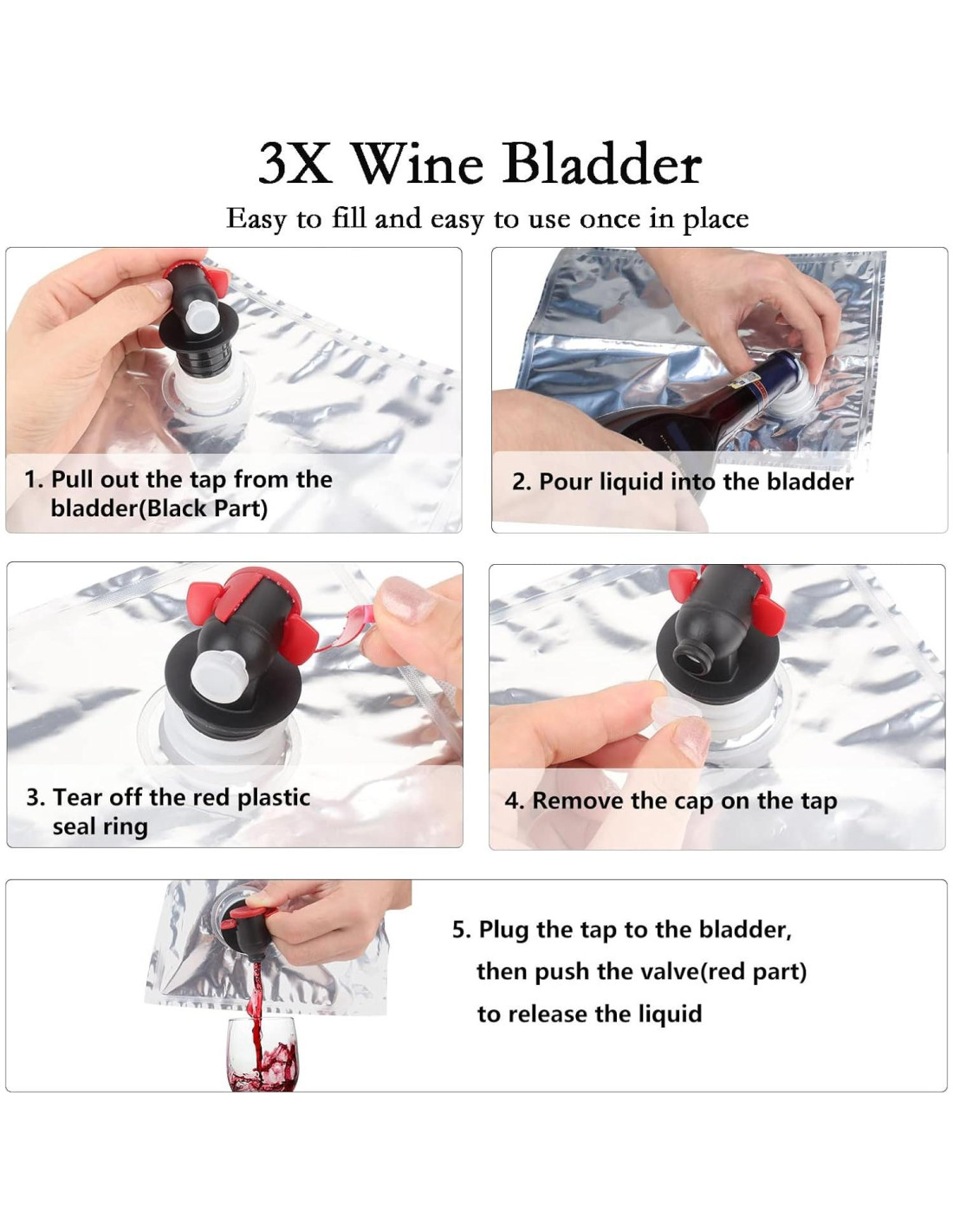 - 3 x 1.5L Bolsa de Vino: 3 piezas de bolsas de almacenamiento de vino reutilizables de 1.5 L con pico vertedor, suficiente para que empaques y lleves grandes cantidades de vino