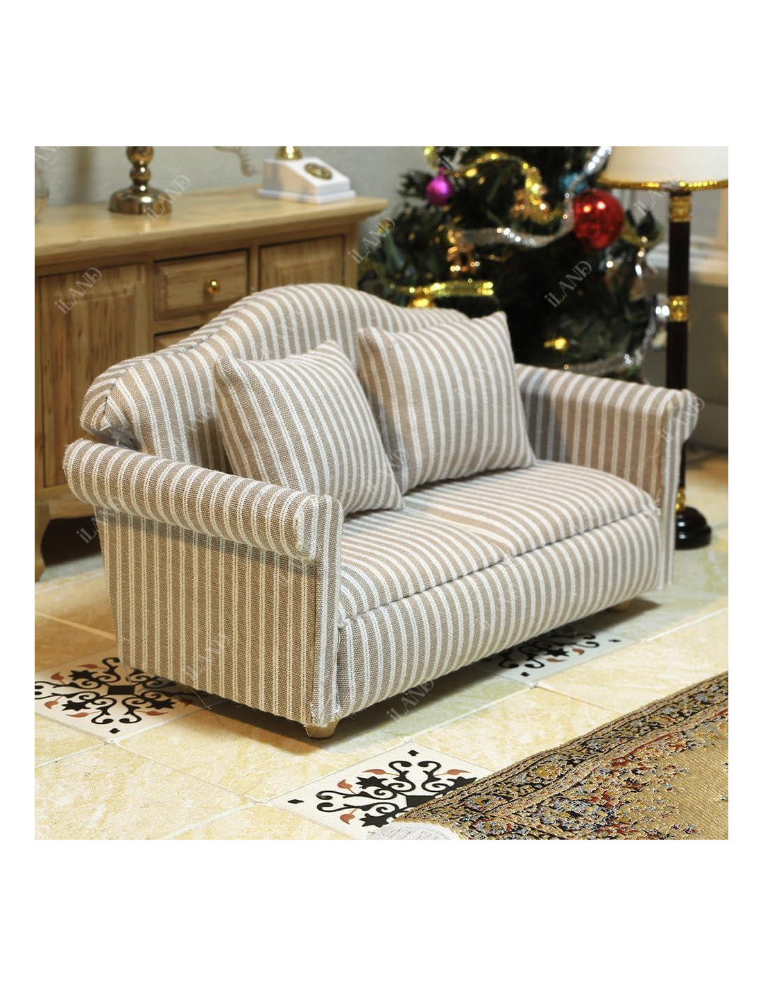 - --MUEBLES CLÁSICOS PARA CASA DE MUÑECAS: Este conjunto de muebles de casa de muñecas iLAND incluye 1 sofá a rayas con 1 mesa de café, 1 armario de libros, 1 armario de almacenamiento, 1 mesa consola en total, lo que proporciona a los jugadores múltiples oportunidades de juego y disfrute.