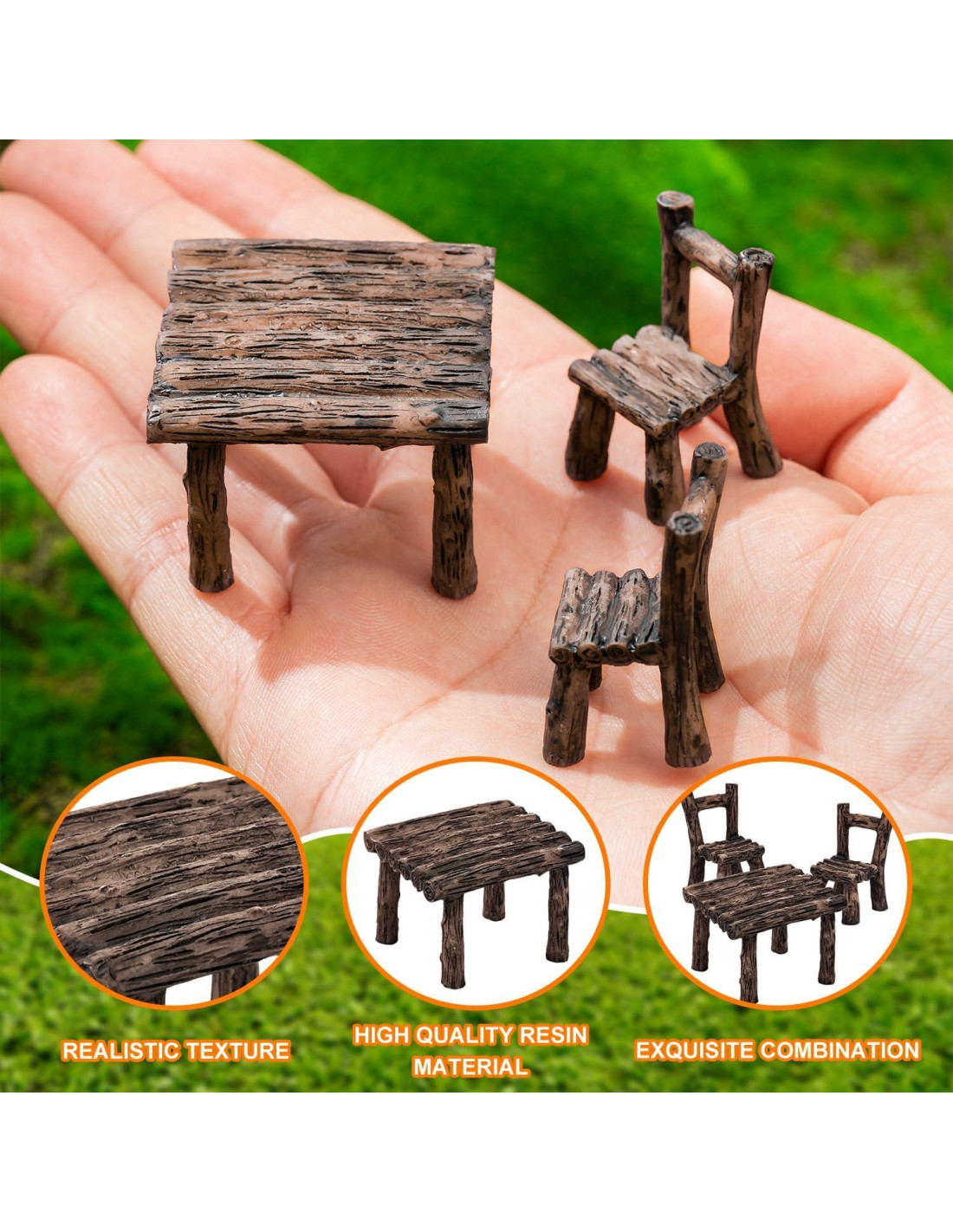 - APRECIANDO LA ARTESANÍA: Nuestros muebles miniatura de jardín de hadas están hechos de material de resina de alta calidad con artesanía de madera simulada, hechos a mano, no son fáciles de desvanecer y dañar, cada mesa y sillas miniatura mide aproximadamente 2.54x3.05 centímetros, adecuado para decoraciones de escenas en miniatura