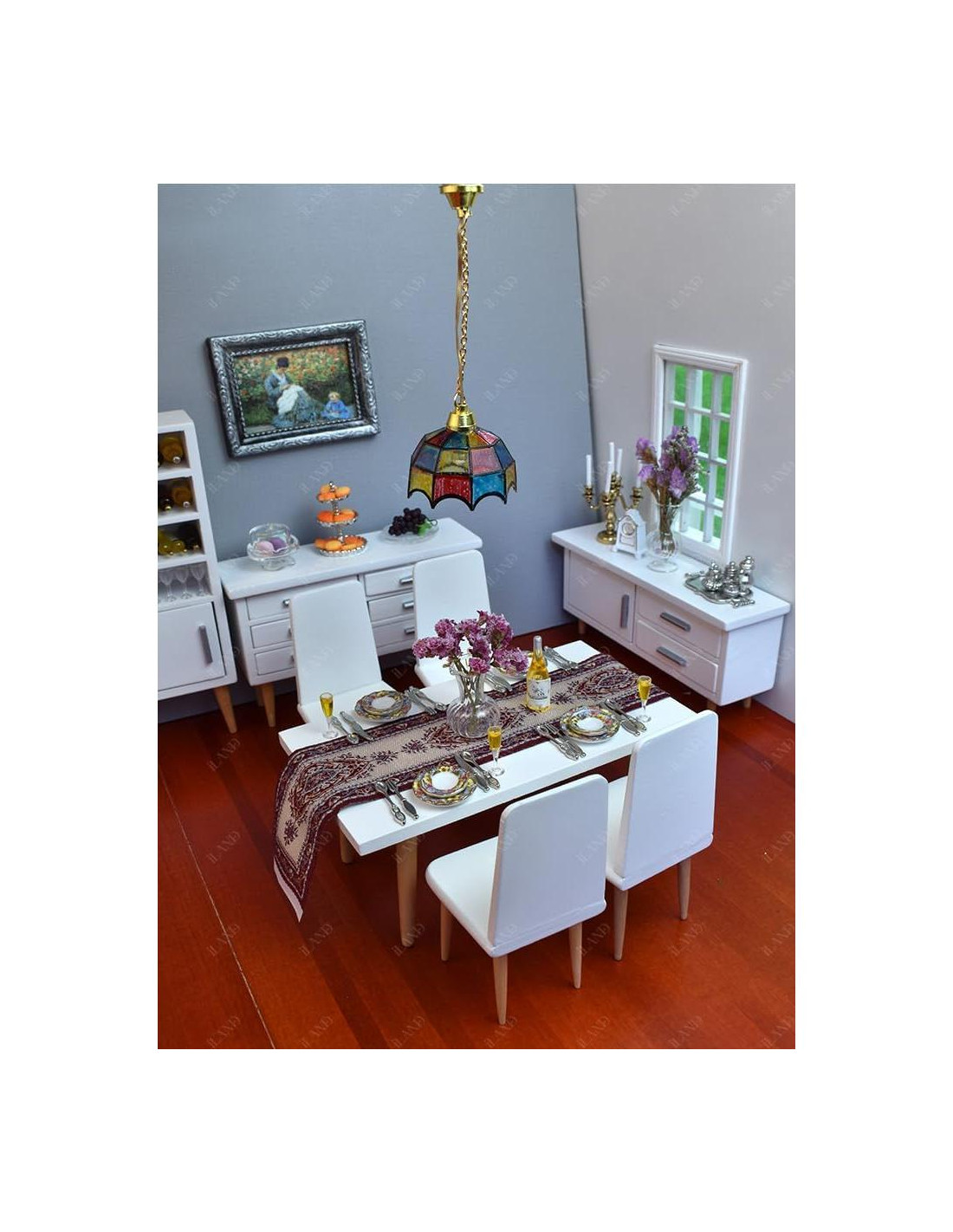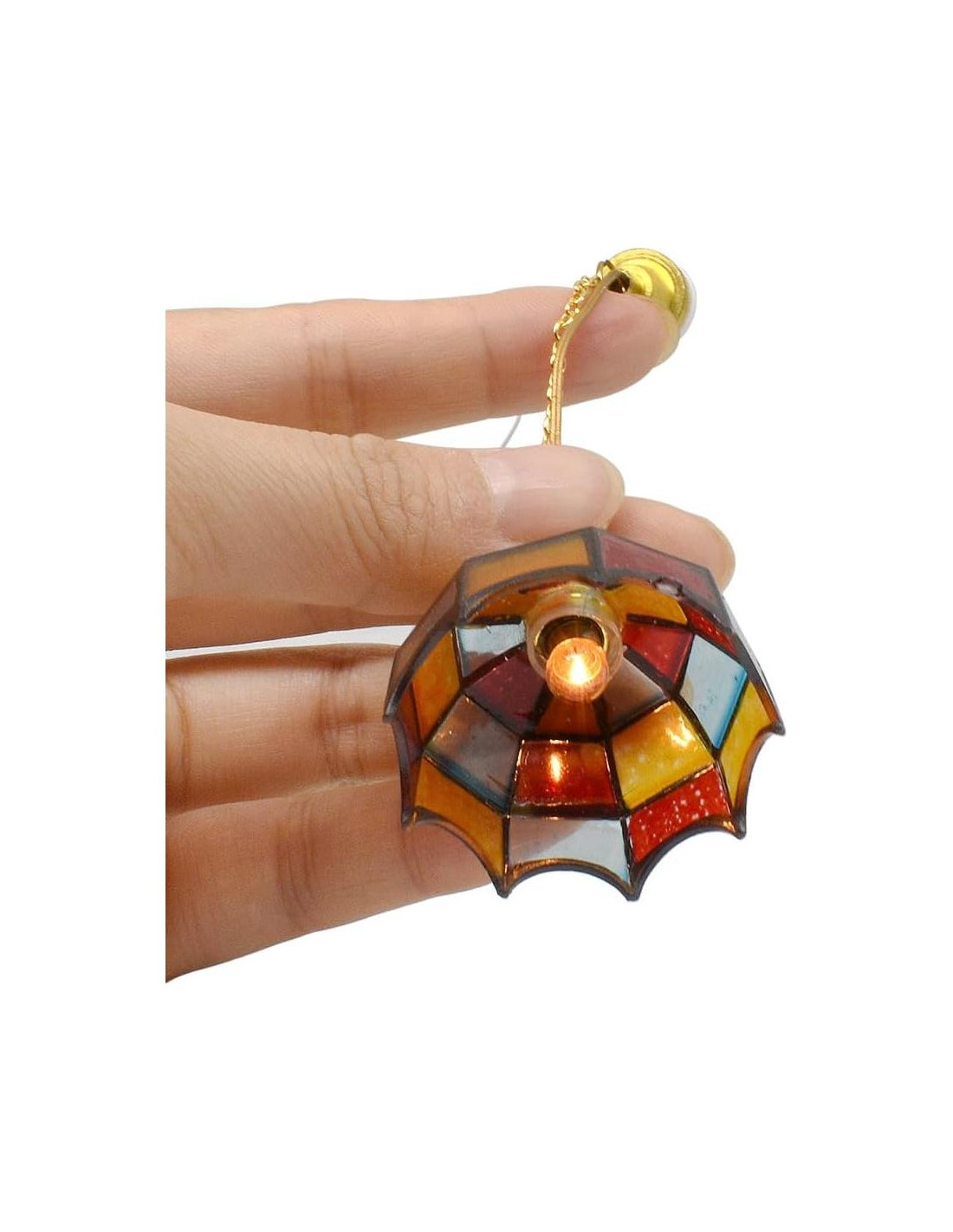 - Lámpara de Casa de Muñecas de Rejilla de Mosaico: Cuando se ilumina, la luz filtra a través de su pantalla de lámpara inspirada en vidrio de colores, proyectando un caleidoscopio de patrones coloridos en el interior de tu casa de muñecas. Los vívidos tonos del arcoíris bailan sobre las paredes y los muebles, aportando tanto encanto nostálgico como color vibrante a cualquier entorno de casa de muñecas.