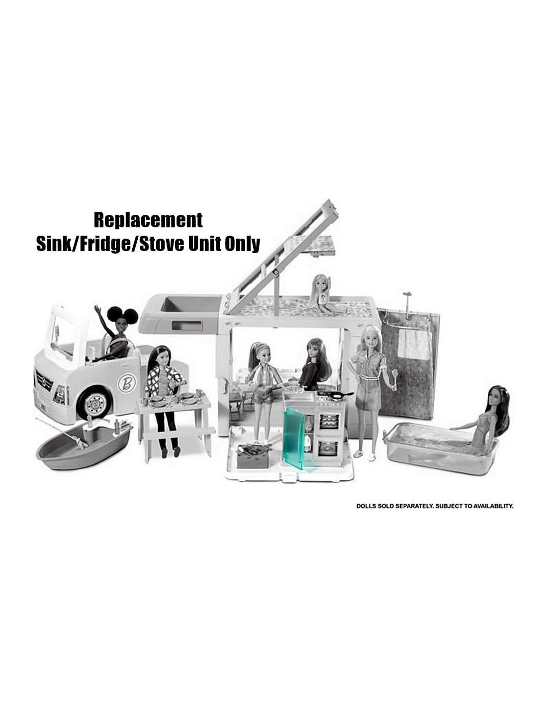 1 Unidad de Fregadero/Refrigerador/Estufa de Repuesto Esta Pieza de Repuesto funciona con el Vehículo y Accesorios Barbie 3-en-1 DreamCamper - La lista es solo para 1 Unidad de Fregadero/Refrigerador/Estufa de Repuesto Cuando los niños salen a la carretera en el Barbie 3-en-1 DreamCamper, ¡sus historias pueden ir a donde su imaginación los lleve! Múltiples transformaciones y sorpresas ocultas hacen que el tiempo de juego sea emocionante: empuja el brillante camper rosa para que la diversión comience. Cuando es hora de explorar, desengancha la parte delantera del camper para revelar una camioneta que tiene capacidad para cuatro. Echa un vistazo debajo del asiento trasero de la camioneta para encontrar un bote que es perfecto para un viaje de pesca. Esta unidad se vende por separado y no está incluida con la Pieza de Repuesto. La descripción es solo para fines de identificación del Vehículo y Accesorios Barbie 3-en-1 DreamCamper. _________________________________________________ Oh no, ¿dónde fue? ¿No es lo peor cuando pierdes la parte más importante de un juguete? ¡No temas, te tenemos cubierto! Llevamos una gran variedad de piezas de repuesto para tu juguete O producto para bebés. Esta Pieza de Repuesto funciona con el Artículo # GHL93 - Vehículo y Accesorios Barbie 3-en-1 DreamCamper Estilos y Colores pueden variar.