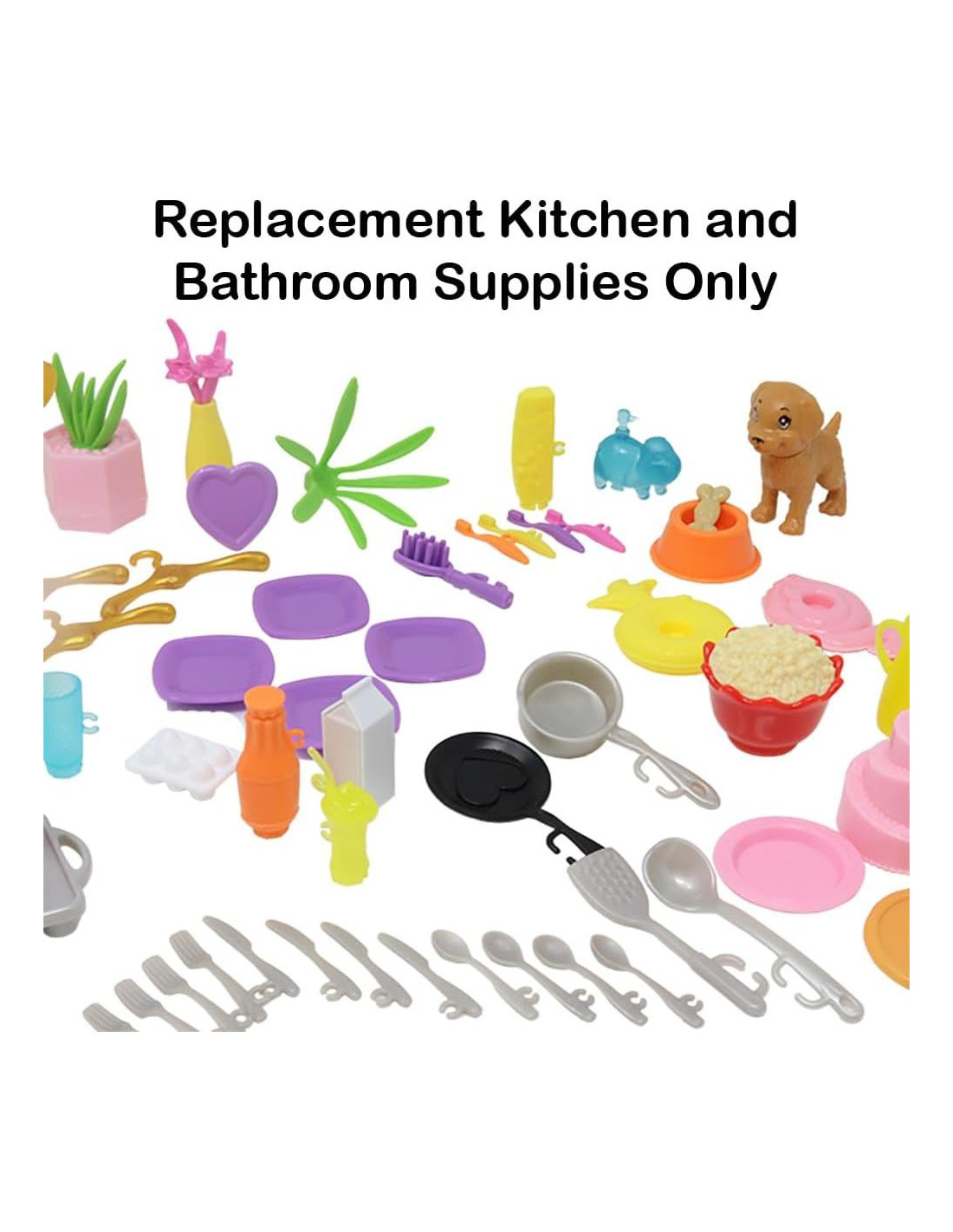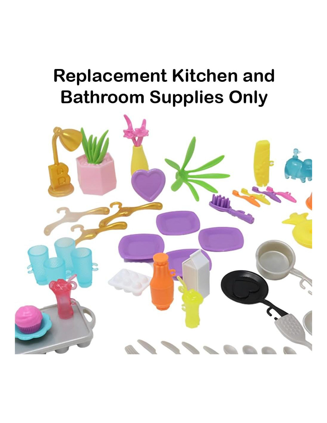 ¿Qué incluye? Suministros de Cocina y Baño de Repuesto. Estos accesorios de repuesto varios funcionan con la Barbie Dreamhouse HMX10.