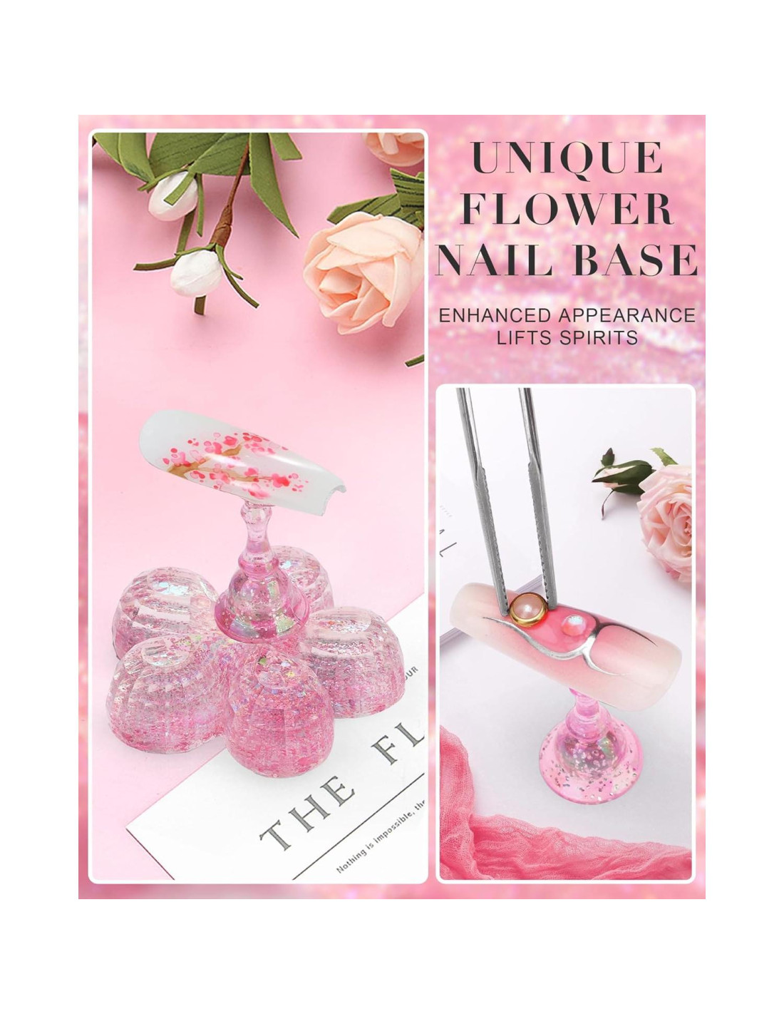 - Información del empaque: recibirás 2 juegos de soportes de exhibición de arte de uñas acrílicas, cada juego incluye 5 piezas de consejos de uñas en forma de ajedrez y 1 pieza de base acrílica, 1 pieza de base en forma de flor rosa, también viene con 48 piezas de masilla adhesiva reutilizable rosa, suficiente para tu práctica diaria de arte de uñas o demandas de exhibición
