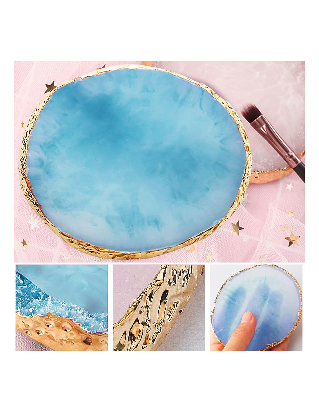 SUMAJU se dedica a proporcionarte productos de calidad. Hacemos todo lo posible para que los clientes tengan la mejor experiencia con el producto, permitiéndote encontrar el interés en hacer proyectos de manualidades. El paquete contiene: Recibirás dos paletas redondas de color para uñas, los dos colores son azul y blanco, que serán tus excelentes herramientas. Tamaño del producto: El tamaño de nuestra paleta redonda para uñas es 10*9cm (3.93*3.54 pulgadas). El tamaño es pequeño y fácil de llevar, pero puede satisfacer completamente tus necesidades de paleta de colores. Diseño exquisito: Nuestra tabla de mezcla para arte de uñas está en el estilo de piedra de ágata, y los bordes están delineados en dorado. El diseño es exquisito. Puede usarse para exhibir las obras de arte de uñas completadas, y también puede usarse como un accesorio fotográfico. Uso amplio: Nuestra paleta de uñas puede usarse no solo como una paleta de colores para gel de uñas, sino también como una paleta para tu maquillaje. Al mismo tiempo, debido a su apariencia exquisita, también puedes usarla como un tablero de exhibición y accesorios fotográficos. Materiales de alta calidad: Nuestras paletas de uñas están hechas de materiales de resina de alta calidad, que son suaves al tacto, fáciles de colorear y fáciles de limpiar y secar.