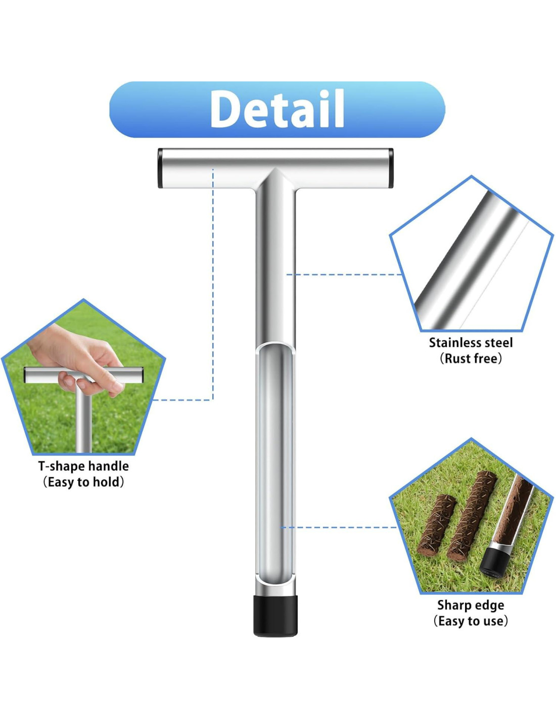 - Diseño de mango en T: El mango en T de la sonda de suelo asegura una fácil inserción y extracción del muestreador mientras se toma la muestra. Equipado con tapones negros en ambos lados para sellar el agujero, ayuda a proteger sus manos de lesiones accidentales por los bordes
