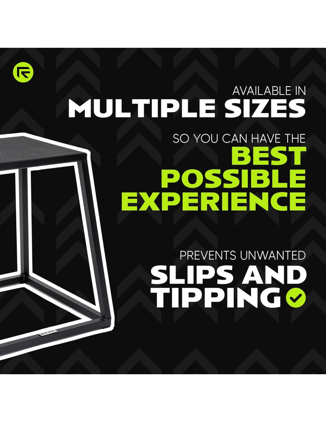 Plataforma de ejercicio Plyo de acero Rage Fitness. Diseñada para entrenamiento de fuerza intenso, estas plataformas de paso antideslizantes de 30-76 cm de altura (Se Vende Individualmente) son la herramienta definitiva para alcanzar tus objetivos de acondicionamiento físico. Fabricadas con material meticuloso, estas cajas pliométricas de CrossFit están construidas de acero tubular de alta resistencia y goma. Esta combinación asegura una durabilidad excepcional y permite que la caja de salto resista condiciones extremas. Con dimensiones 38.1x38.1 cm (Base) - 31.8x31.1 cm (Superior) y 5.4 kg de peso del artículo con un límite de 254 kg de 30 cm, 45.7x45.7 cm (Base) - 35.6x35.6 cm (Superior) y 7.1 kg de peso del artículo con un límite de 249 kg de 45 cm, y 53.3x53.3 cm (Base) y 38.1x38.1 cm (Superior) y 8.5 kg de peso del artículo con un límite de 233 kg de 60 cm. La versatilidad es clave para lograr un físico bien equilibrado, el equipo de CrossFit Plyo de acero para el gimnasio en casa ofrece justo eso. Involucra todo tu cuerpo mientras realizas varios ejercicios como saltos de caja, flexiones, fondos, subidas, ejercicios de agilidad y rutinas de cardio. Fortalece tus hombros, brazos, pecho, glúteos, piernas y más, todo con esta única pieza de equipo. La seguridad es primordial durante entrenamientos intensos, por lo que nuestra caja de salto pliométrica está diseñada con características antideslizantes y anticaídas. La parte superior e inferior de goma proporcionan un excelente agarre, asegurando un apoyo seguro incluso durante los movimientos más desafiantes. El marco de acero de alta resistencia añade estabilidad, previniendo deslizamientos, tambaleos y caídas no deseadas, para que puedas concentrarte en superar tus límites sin distracciones. Historia de la Marca Rage Fitness es reconocida como la marca líder en la industria del fitness. Desde 2008, Rage se ha expandido globalmente, convirtiéndose en la marca definitiva en fitness funcional. Rage prospera en el sudor, la pasión y el equipo de fitness duradero para alimentar la pasión de aquellos que levantan, saltan, empujan, patean, corren, escalan, atrapan, giran, voltean, resisten, sudan y se recuperan. Nuestro compromiso con la calidad y la innovación es evidente en cada producto que creamos.