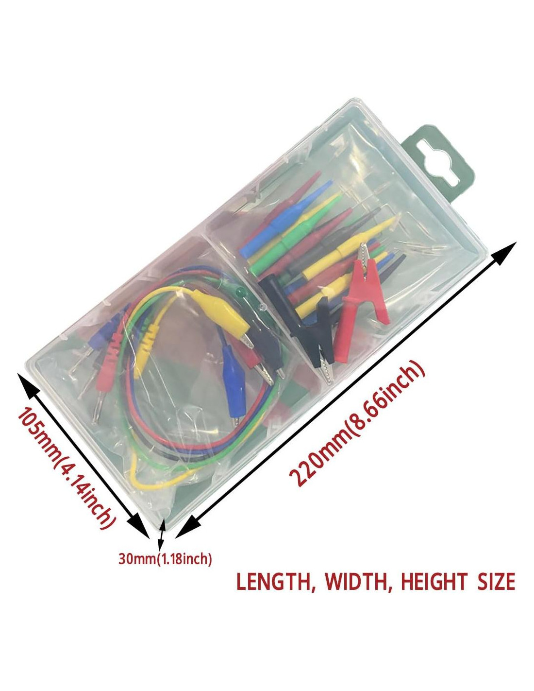 - Kit de Probes de Espalda Profesional 22 en 1: Tu solución completa para pruebas eléctricas automotrices no destructivas. Incluye 15 probes de acero inoxidable, 5 cables de banana a cocodrilo y 2 clips de cocodrilo de alta resistencia. Esencial para mecánicos y aficionados.