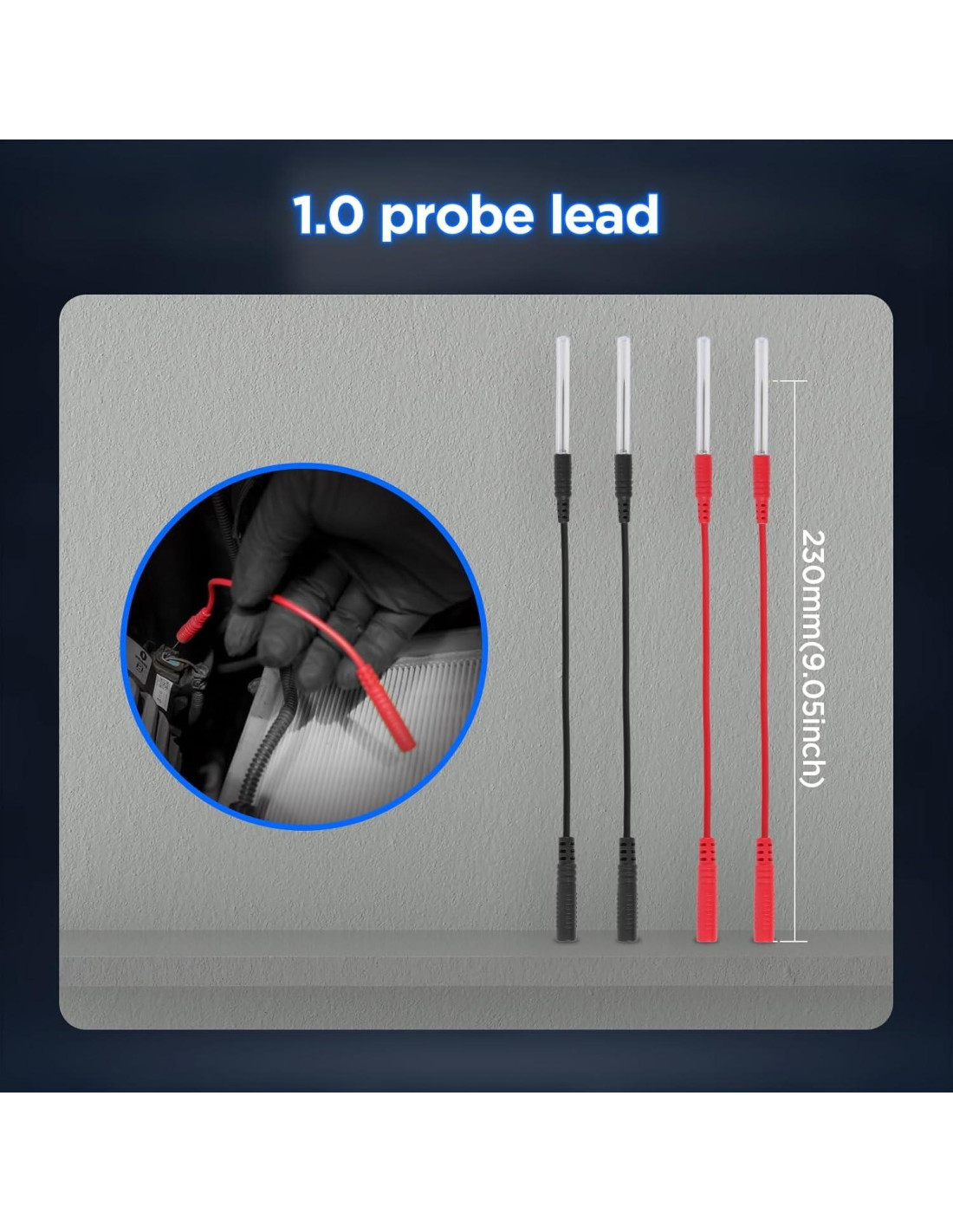 - Kit de Cables de Prueba de Multímetro de 48PCS funciona perfectamente con cualquier multímetro e instrumento de prueba. Este kit de cables de multímetro se utiliza para diagnosticar, probar y reparar circuitos automotrices complejos. Te ayuda a detectar rápidamente fallos eléctricos en el automóvil sin dañar el cableado eléctrico. Ampliamente utilizado en diferentes entornos de medición como industrial, electrónica, hogar y automotriz.