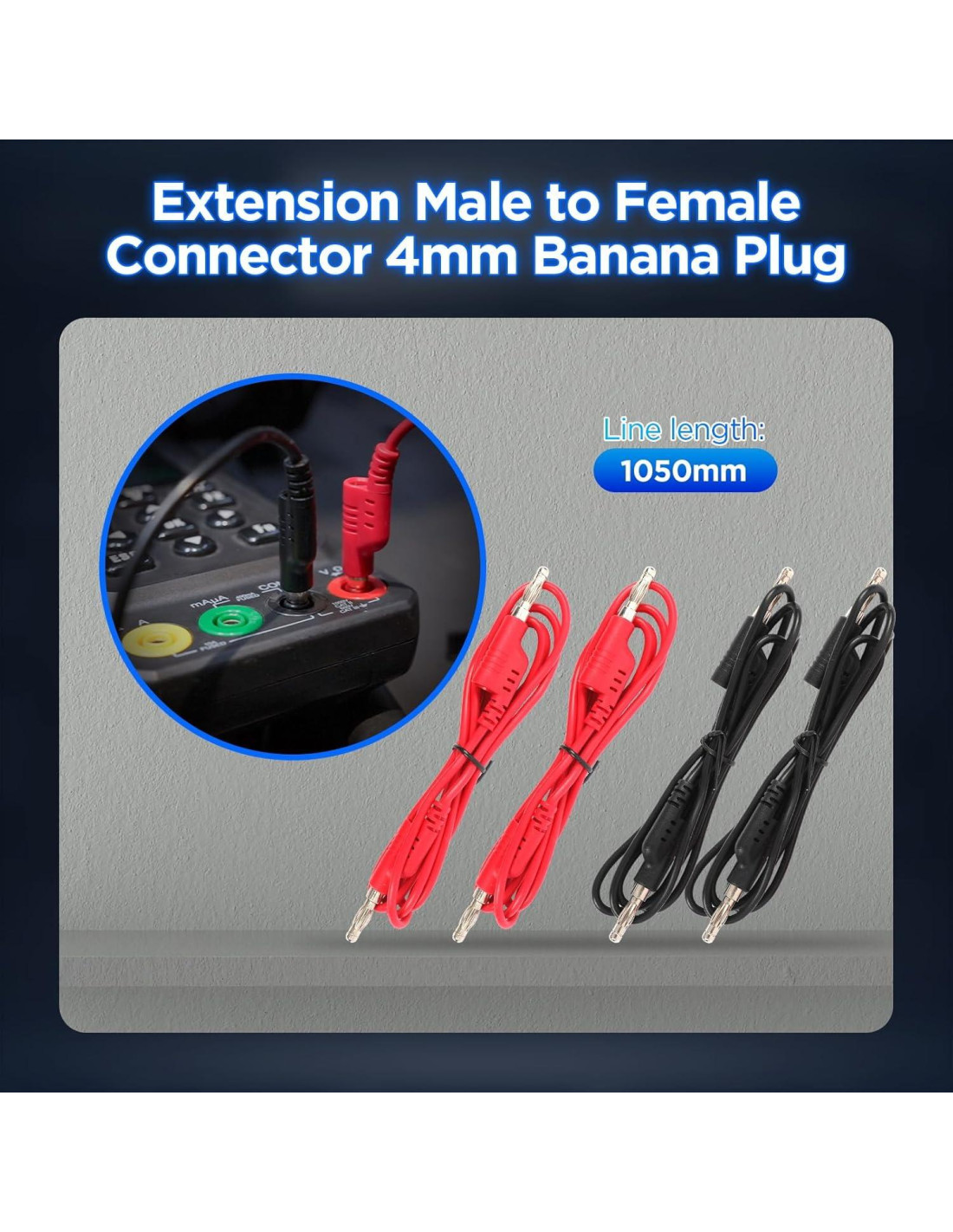 - Ambos extremos de estos cables de prueba están moldeados por inyección con enchufes estándar de 4mm. Enchufe recto a enchufe en ángulo recto. Perfecto para pruebas con multímetros, medidores de pinza y otras sondas que tienen conector estándar de 4mm. Puede conectar un medidor de prueba eléctrico compatible a un dispositivo para pruebas. Colocación flexible y fácil de usar.